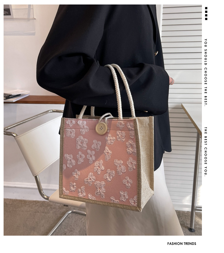Bolsa de almuerzo portátil de lino para mujeres 2023 nueva bolsa de momia de excursión informal Bolsa de almuerzo de transporte de mano de estudiante de lino japonés