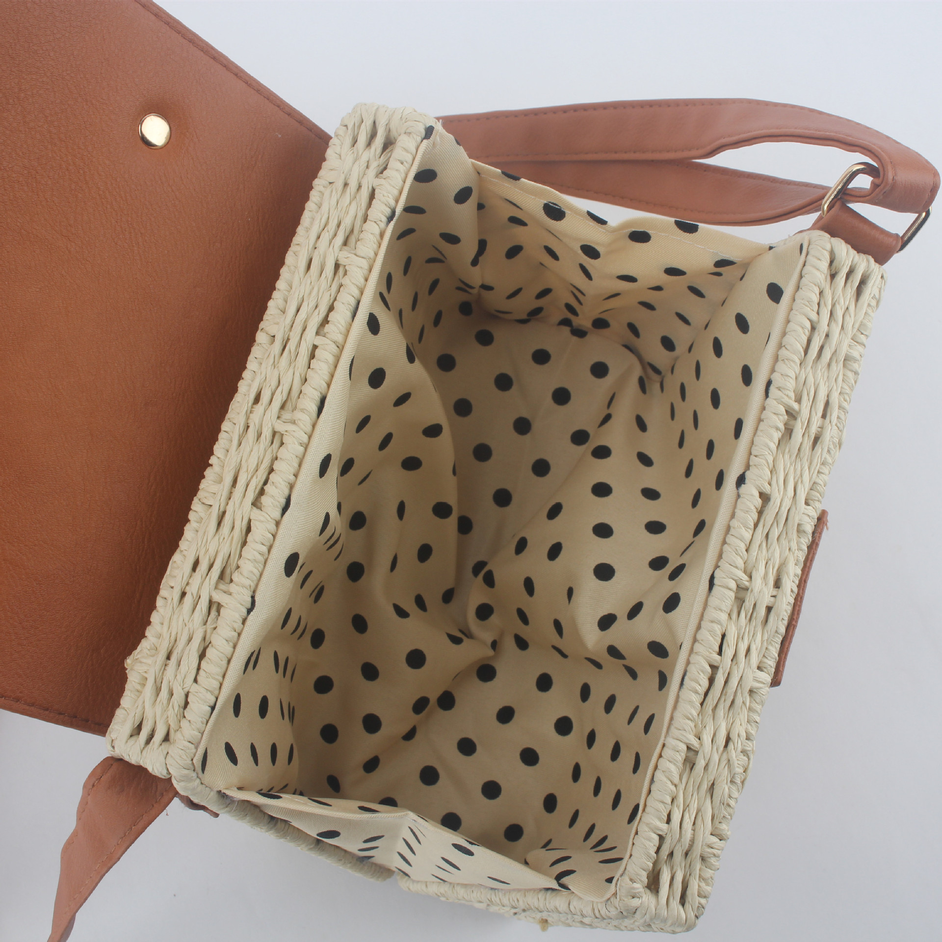 Bolsa de paja de diseño de nicho para mujeres 2023 nueva moda en línea popular bolsa de mensajero portátil pequeña bolsa cuadrada