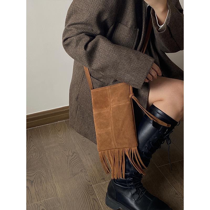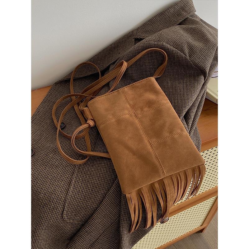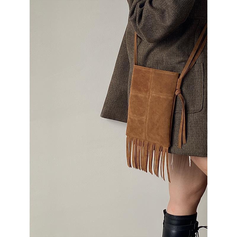 2023 nuevo nicho diseño nuevo bolso de las mujeres estilo bohemio borla americana bolso esmerilado crossbody bolso del teléfono para las mujeres