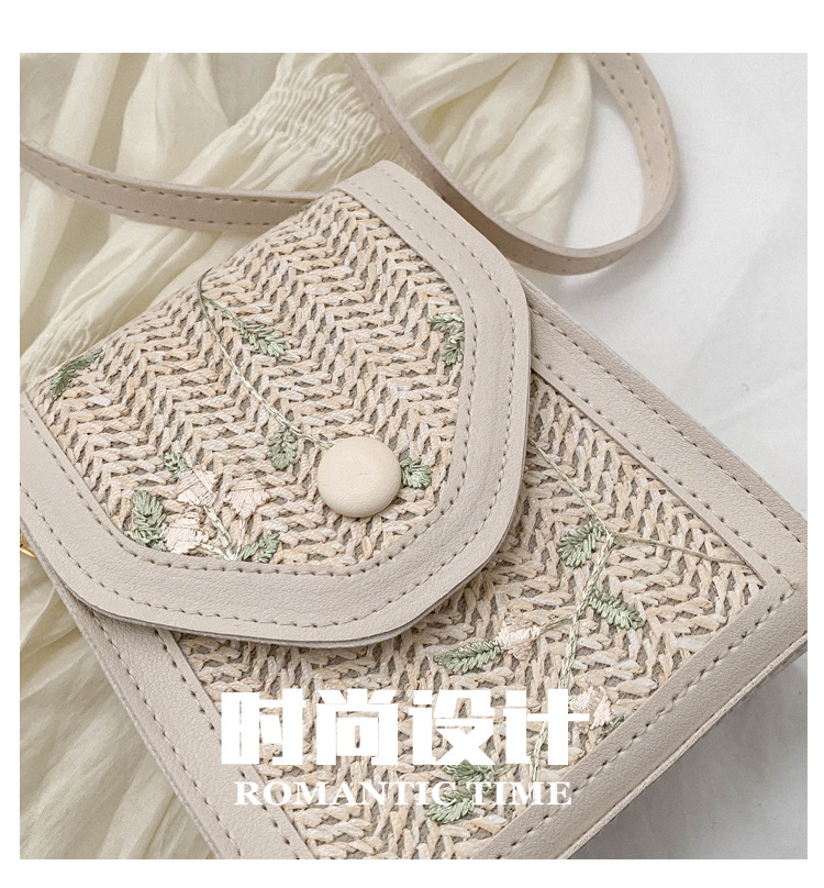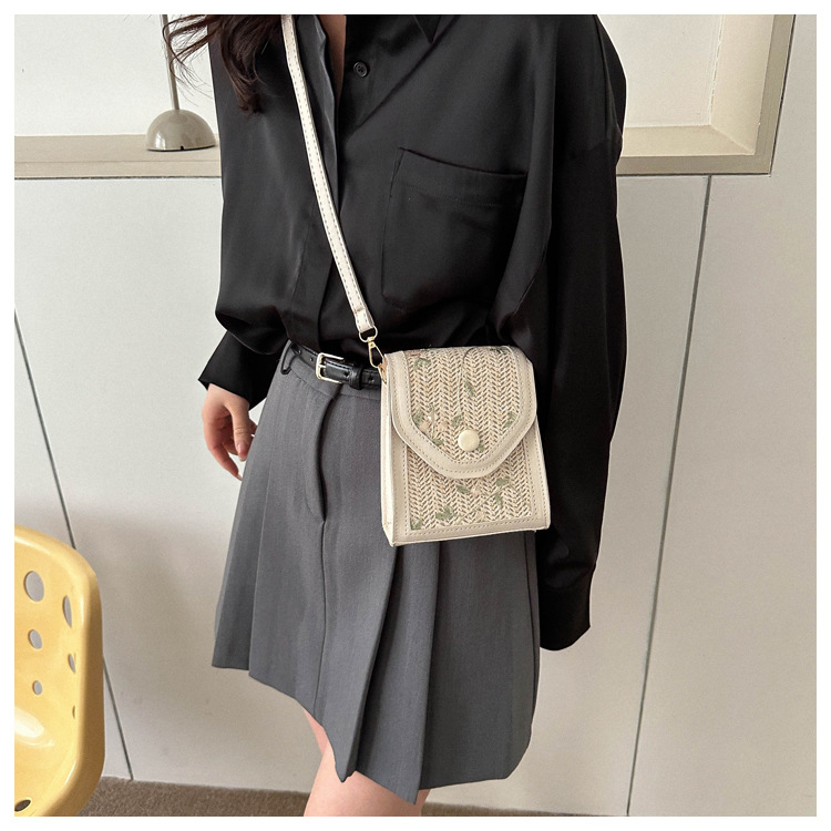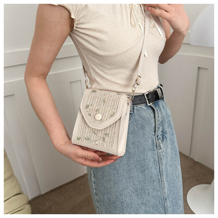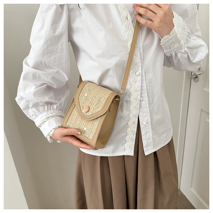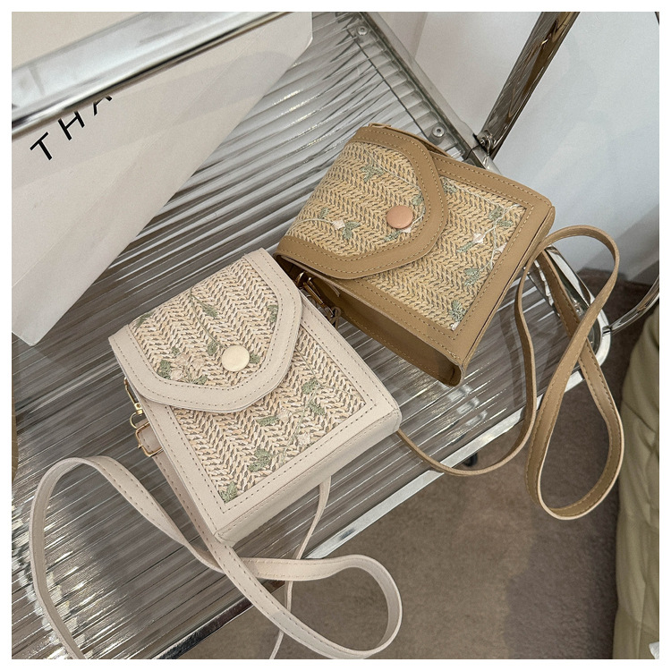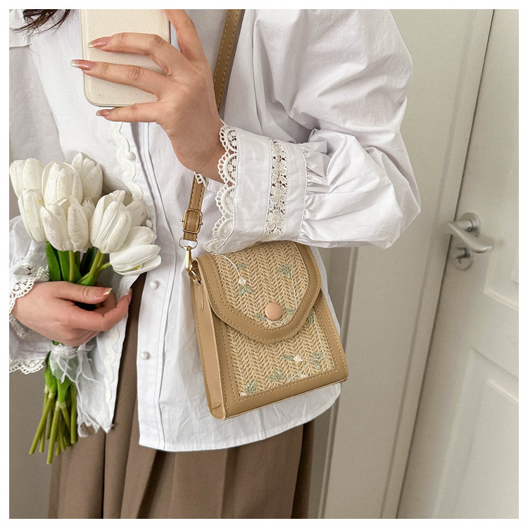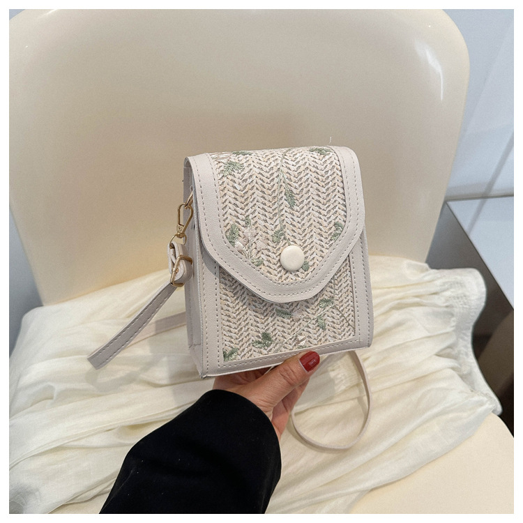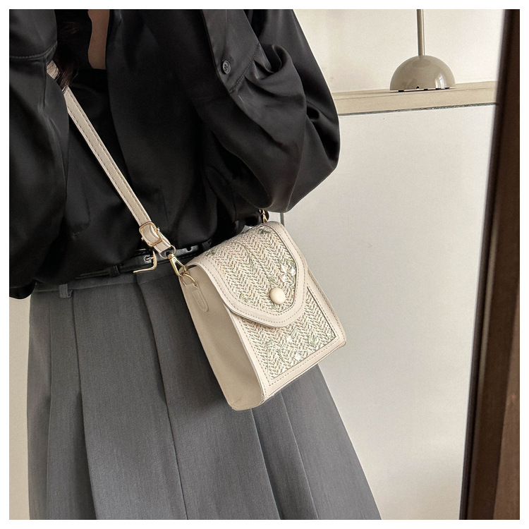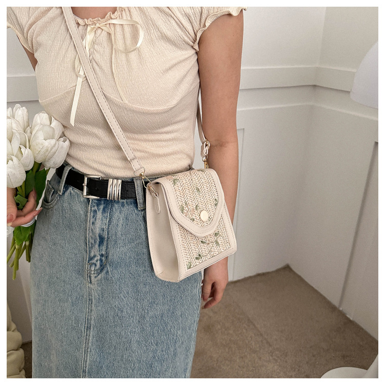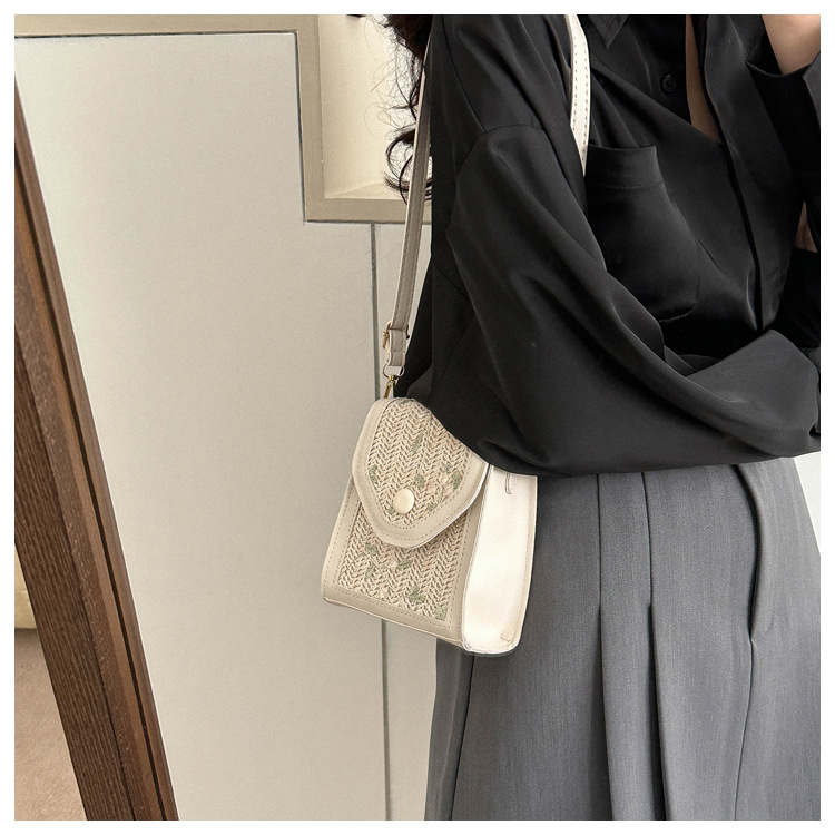 Paja tejida pequeña bolsa para las mujeres 2023 nuevo retro bordado artístico tejido bolsa Mori pastoral ins vertical pequeña bolsa cuadrada