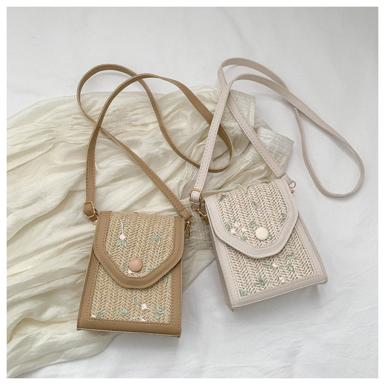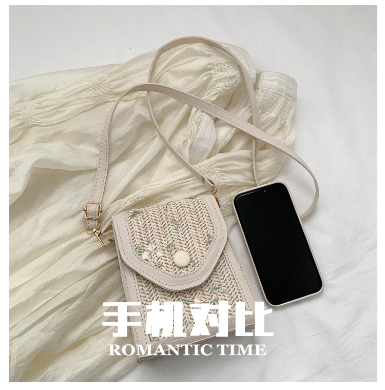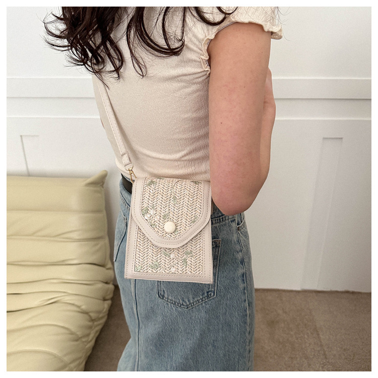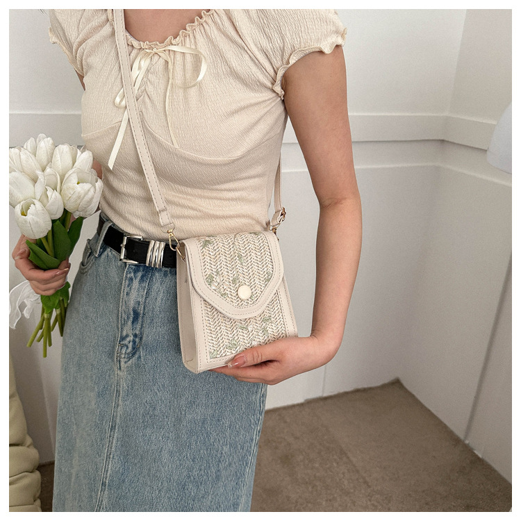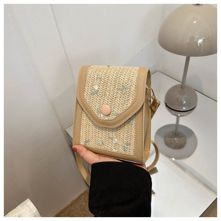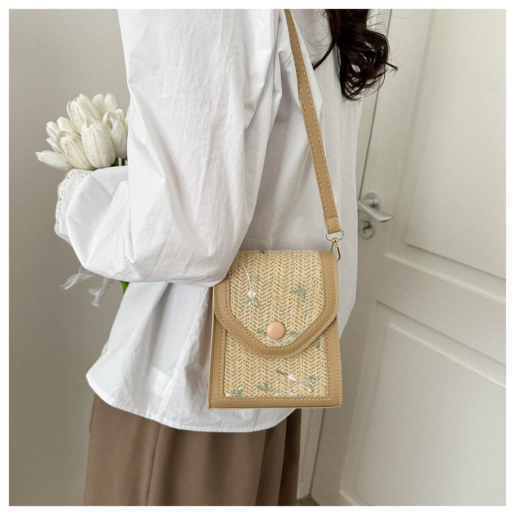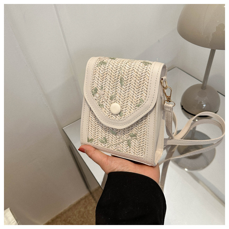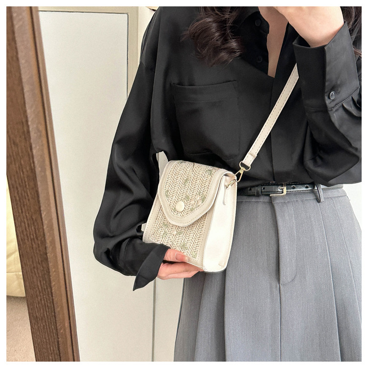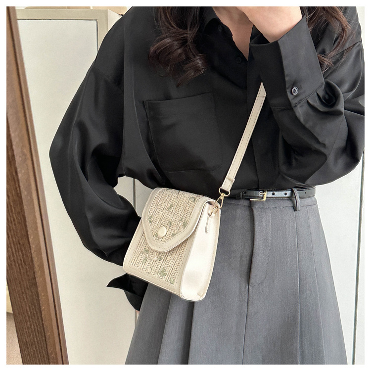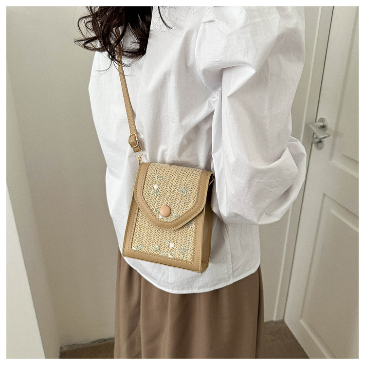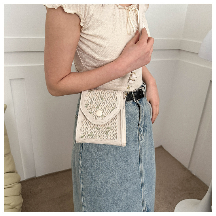 Paja tejida pequeña bolsa para las mujeres 2023 nuevo retro bordado artístico tejido bolsa Mori pastoral ins vertical pequeña bolsa cuadrada