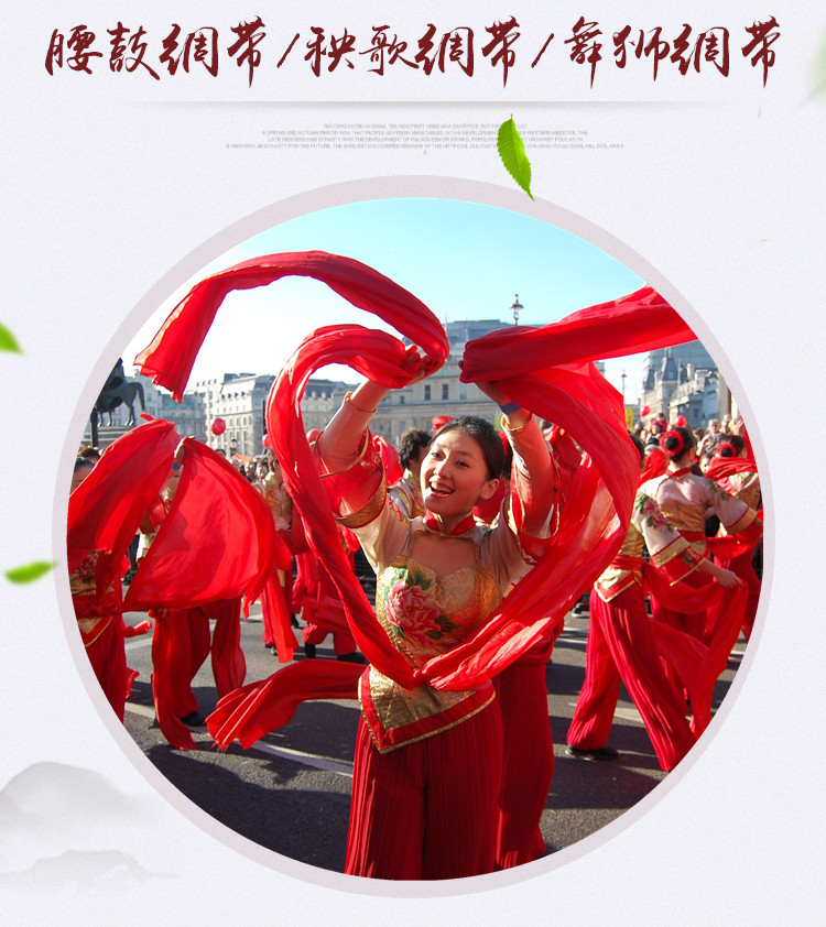 Yangge Cinta Roja danza de seda roja de seda Cinta Larga Reunión Anual de seda roja cintura tambor cinturón Accesorios