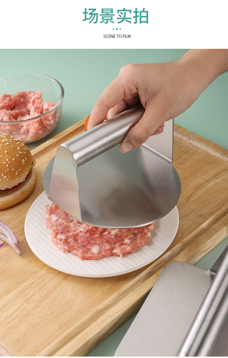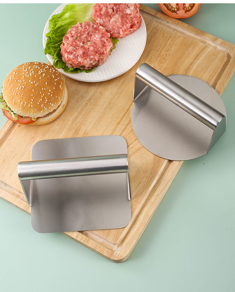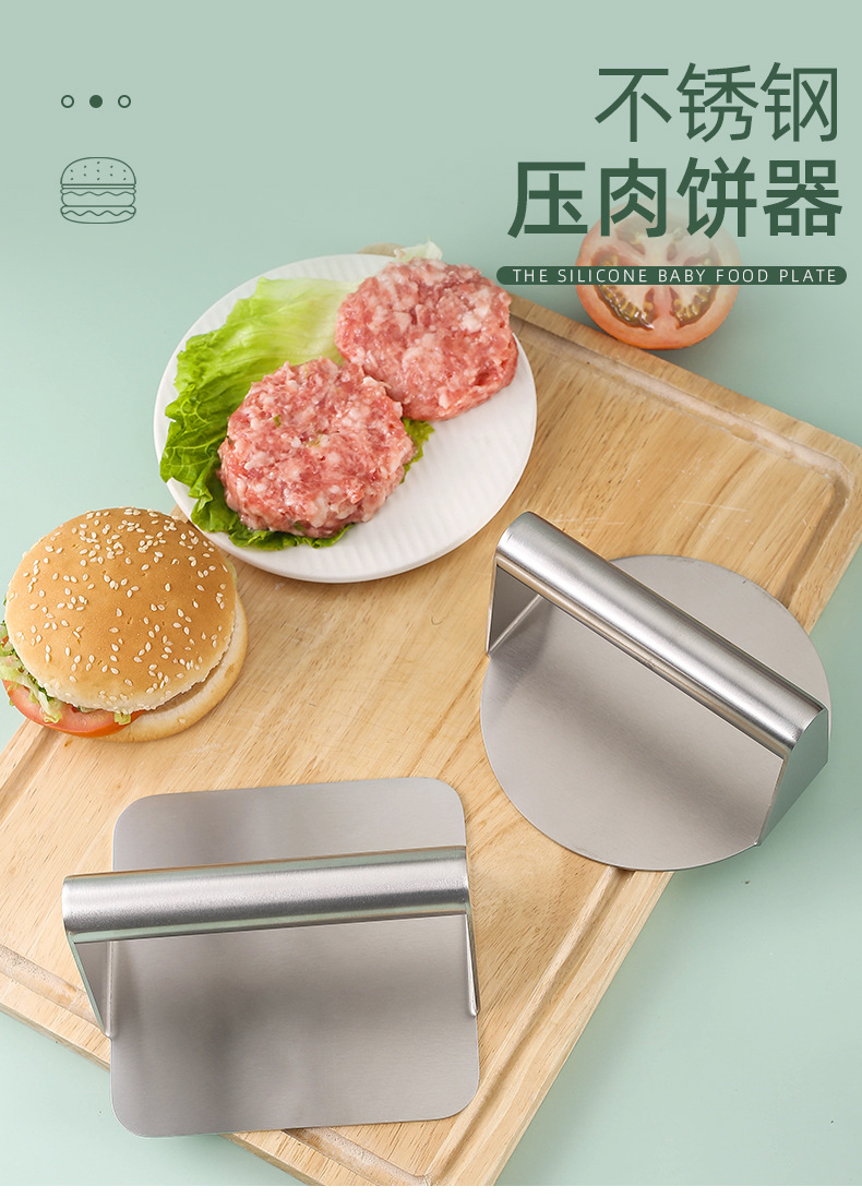 Transfronteriza de acero inoxidable cuadrado redondo prensa de carne manual hamburguesa carne pastel de carne Prensa antiadherente herramientas de cocina
