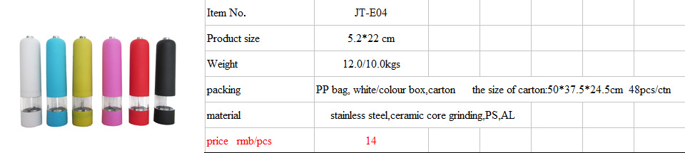 Ventas directas de la fábrica en stock bajo precio de suministro de color eléctrico molino de pimienta