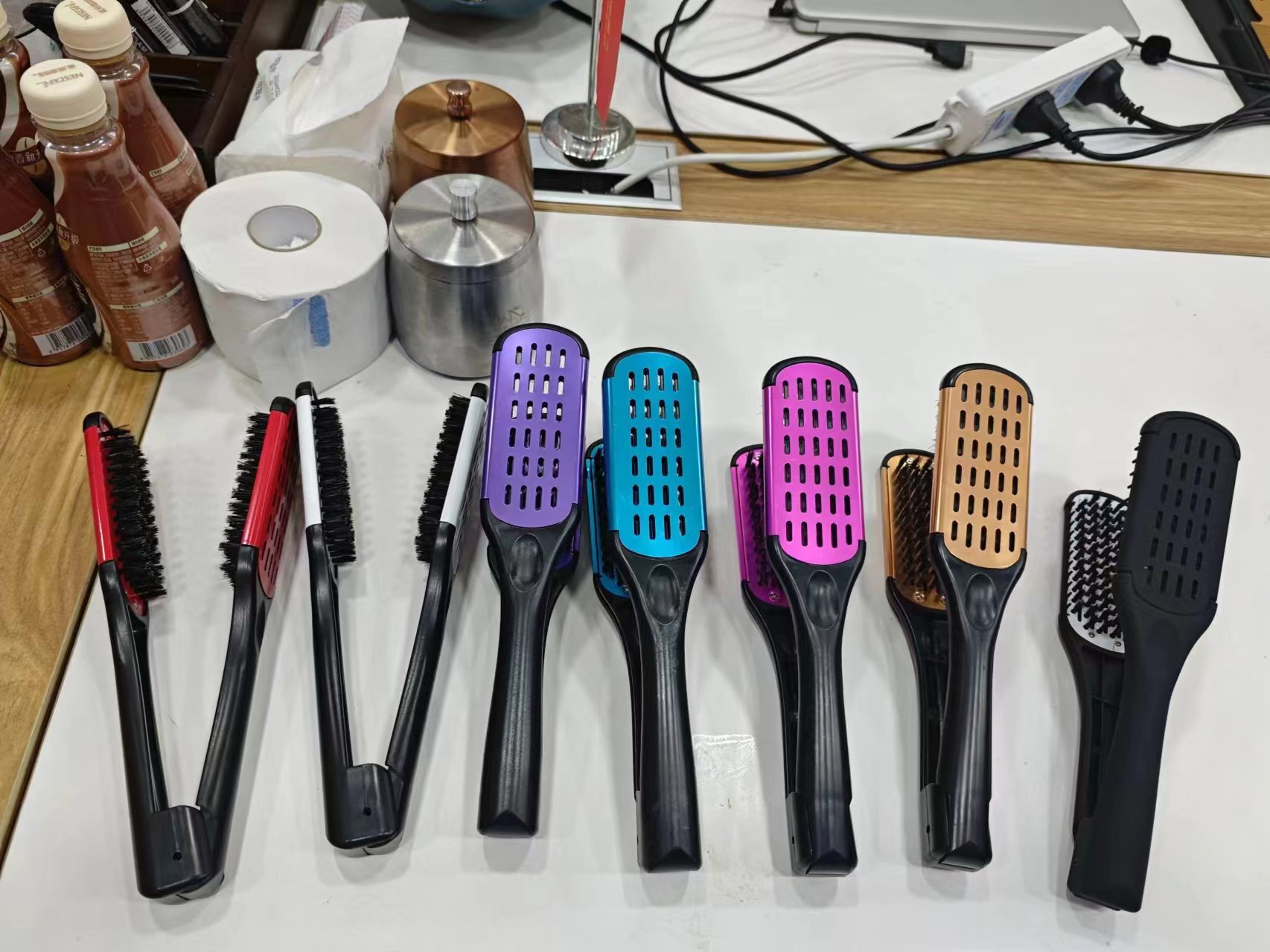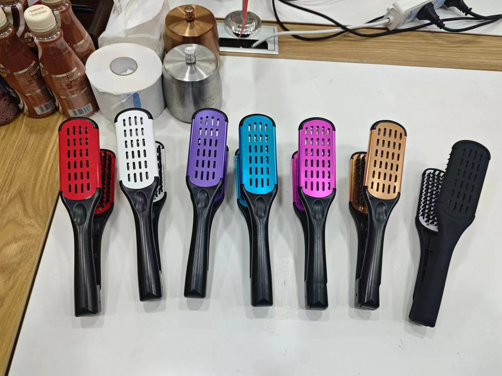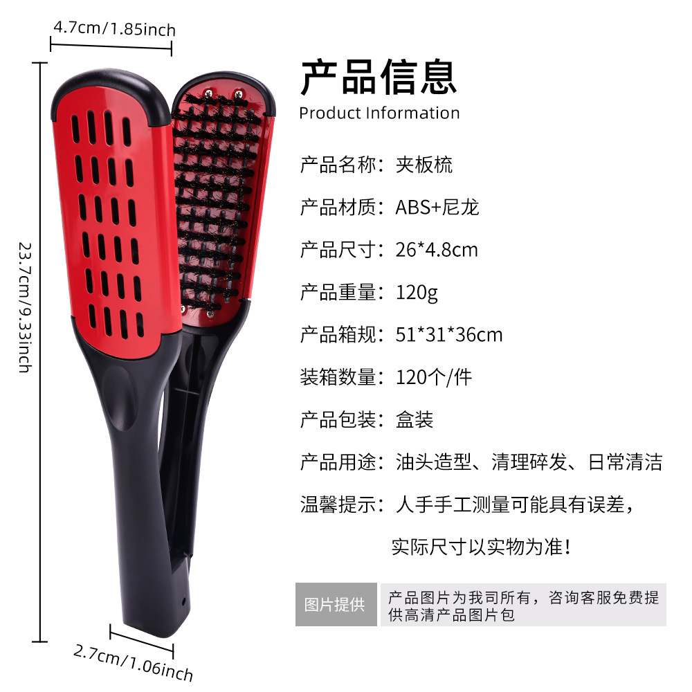 跨境款美发夹板梳子直发造型梳鬃毛顺发梳子耐高温防静电拉直V梳