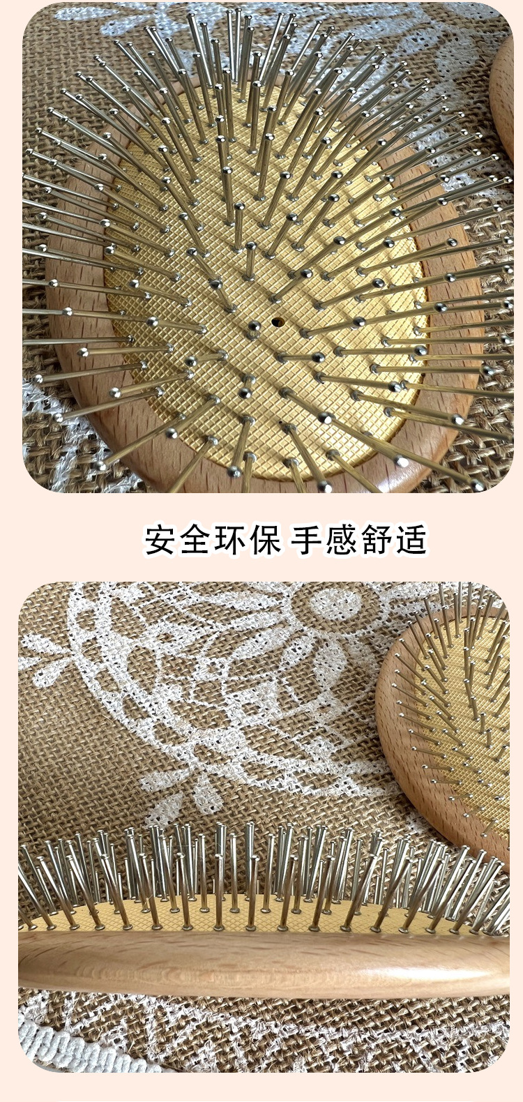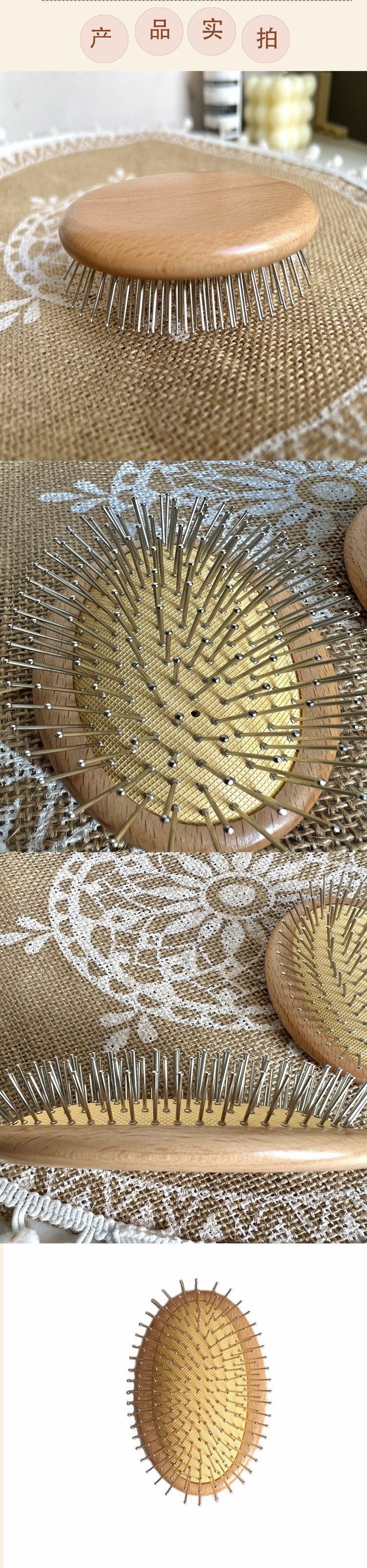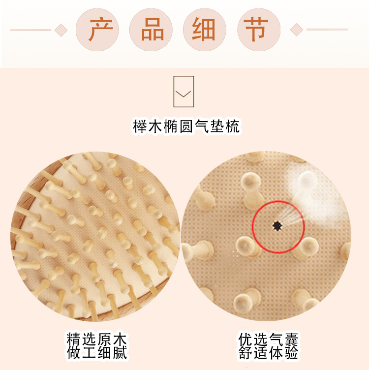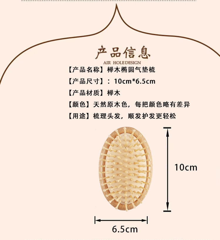 Haya oval peine airbag masaje peine cojín de masaje Dashboard peine maquillaje Pelo Rizado peine madera