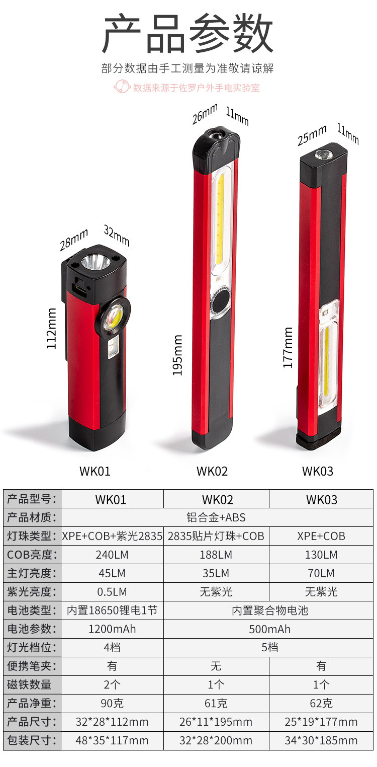 | Color | WK01 luz de trabajo COB multifuncional en forma de columna cuadrada,WK02 larga plana multifunción COB luz de trabajo,WK03 luz de trabajo COB multifuncional en forma de horquilla |