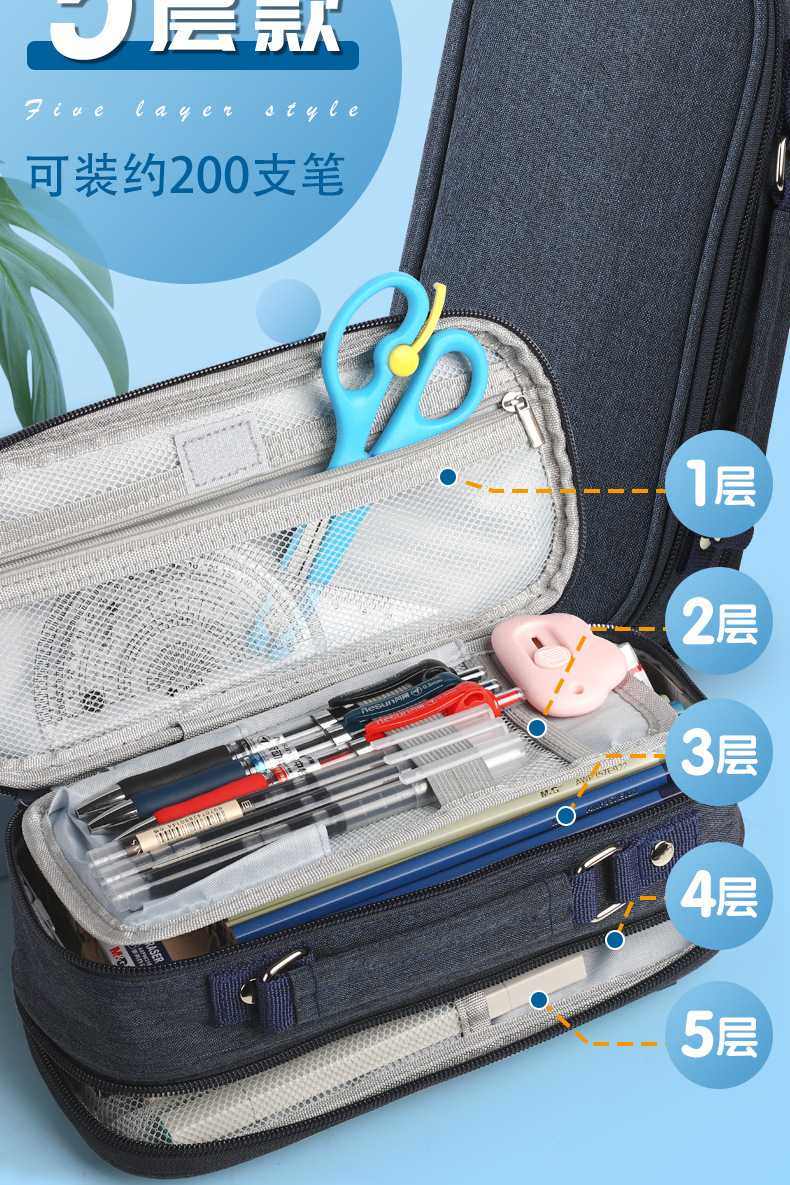 | Colores | Cinco capas de negro/puede contener 200 bolígrafos,Cinco capas de rosa/puede contener 200 bolígrafos,Cinco capas de gris/puede contener 200 bolígrafos,Cinco capas de azul real/puede contener 200 bolígrafos,Azul marino |