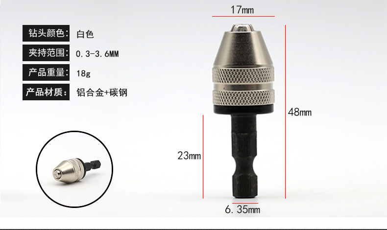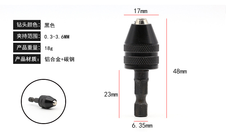 | Modelo | Mango redondo 0,3-3,4mm mandril (diámetro del mango 2,35mm),Mango redondo 0,3-3,4mm mandril (diámetro del mango 3mm),Mango hexagonal 0,3-3,6mm mandril (negro),Mango hexagonal 0,3-3,6mm mandril (blanco),Mandril hexagonal 0.3-8.0mm (negro por defecto),Mango hexagonal 0,3-6,5mm mandril (negro),Mango hexagonal 0,3-6,5mm mandril de cola larga (blanco predeterminado) |