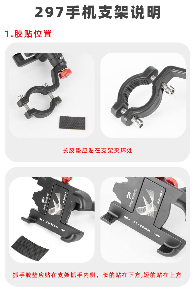 | Colores | Anillo de clip del soporte del teléfono móvil SJJ-297N negro,Marco del teléfono móvil tipo anillo SJJ-297N titanio,Espejo retrovisor SJJ-297E negro,SJJ-297B de pie del manillar negro |
