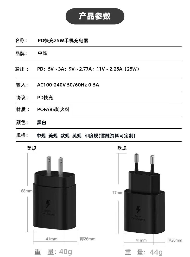 | Aplicable al cargador Samsung S23 | Cabeza de carga rápida de 25W |