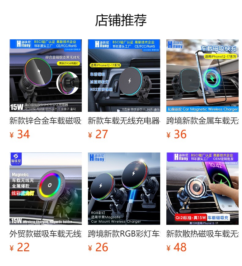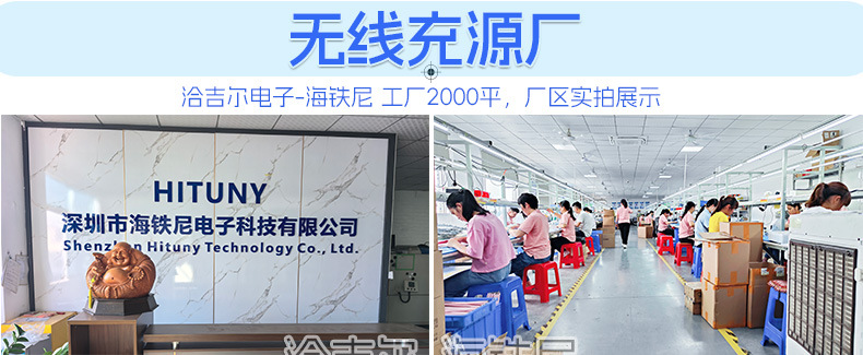洽吉尔电子(海铁尼Hituny)工厂2000平,已过BSCI验厂认证,主要生产桌面无线充Qi,磁吸无线充Qi2.0/Qi2.2,车载无线充Qi/Qi2,数码无线充和多合一无线充电器等,我司支持外观设计,结构设计,模具开发和生产组装,欢迎面谈及审厂。