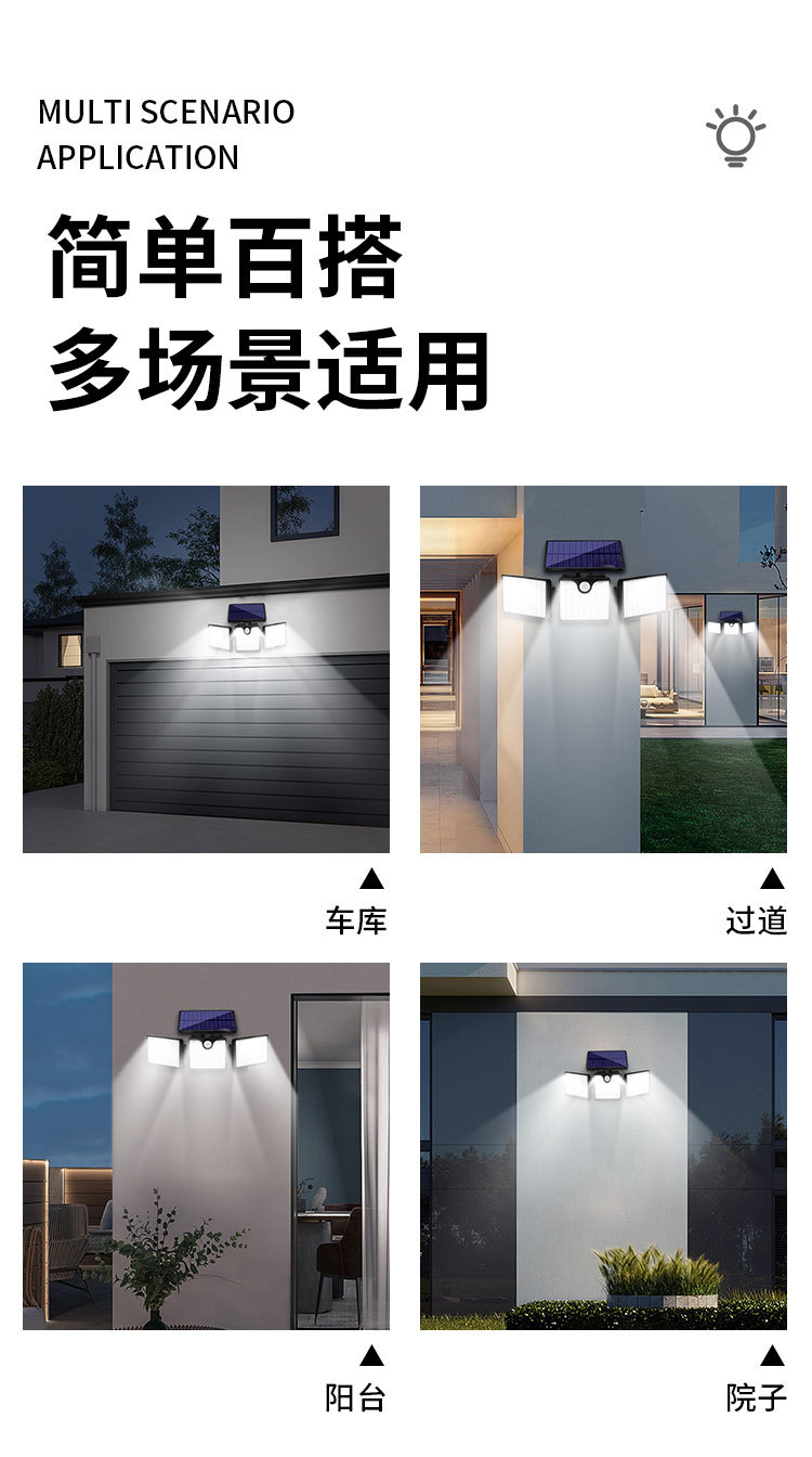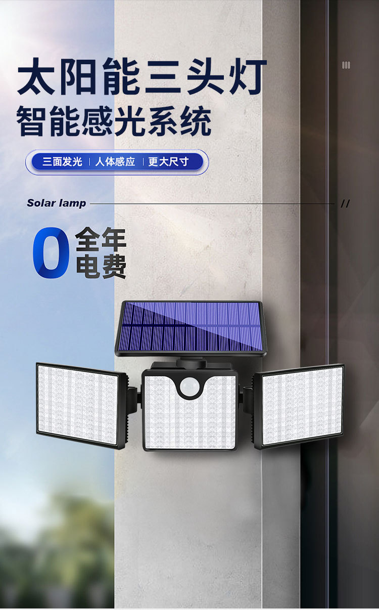 【产品名称】:太阳能三头壁灯