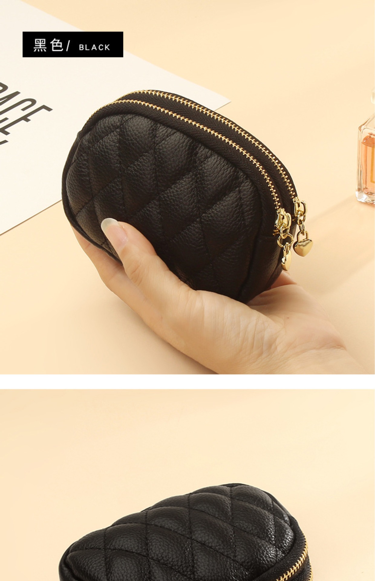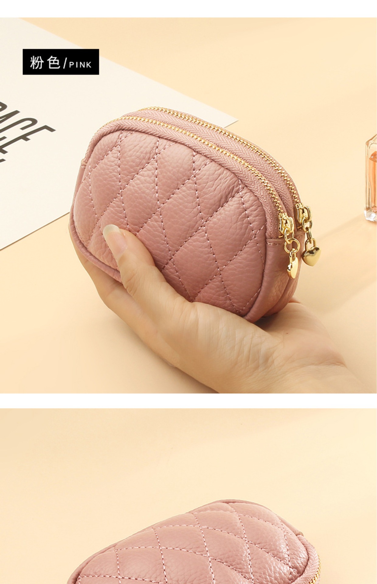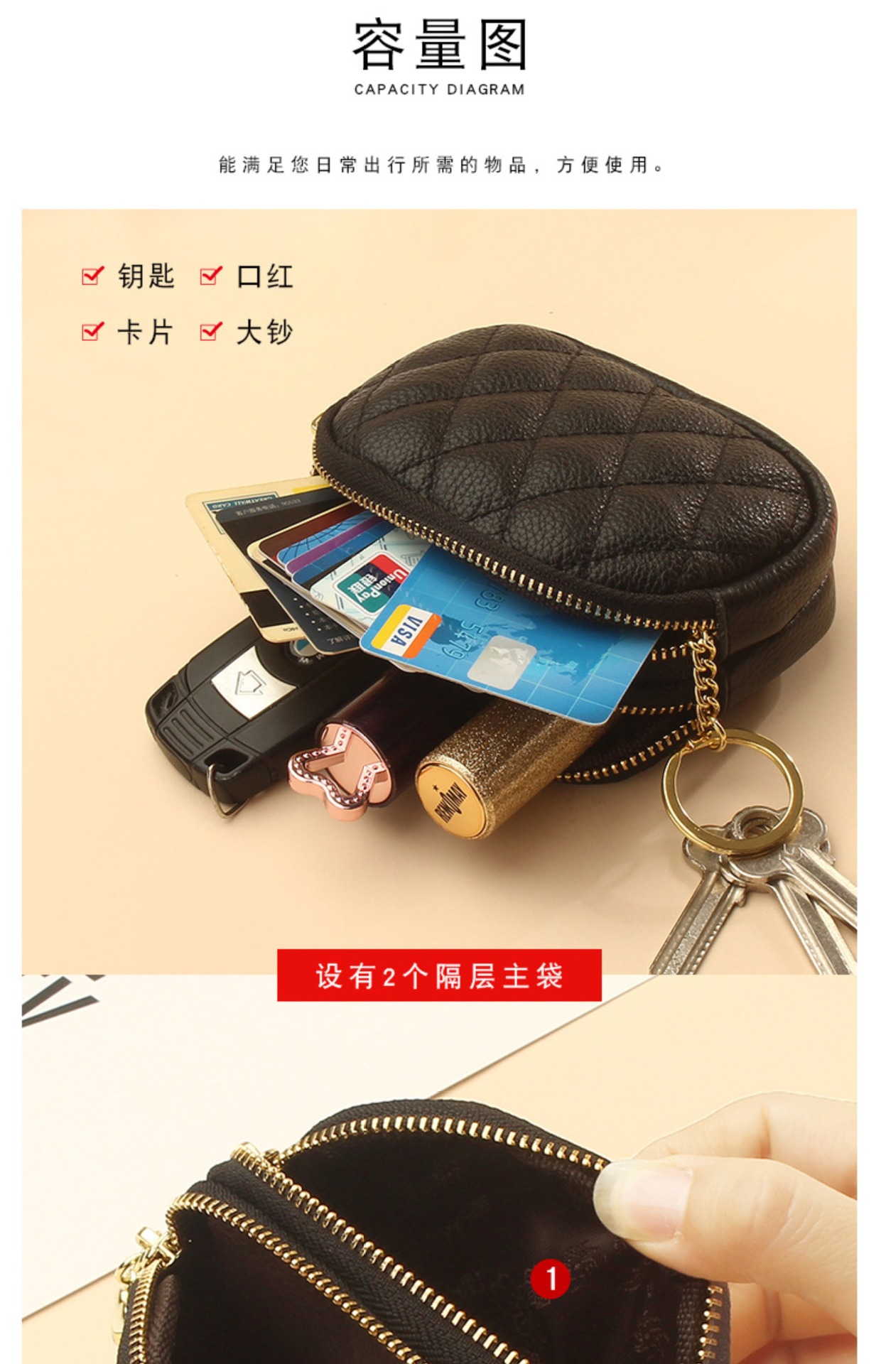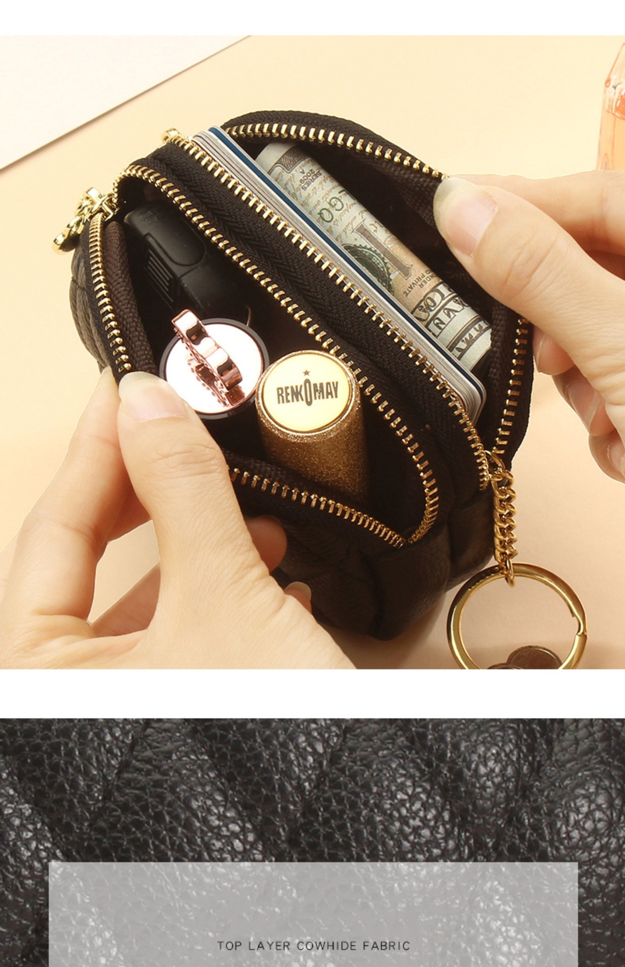 Monedero/llavero de doble cremallera con tarjetero para mujer