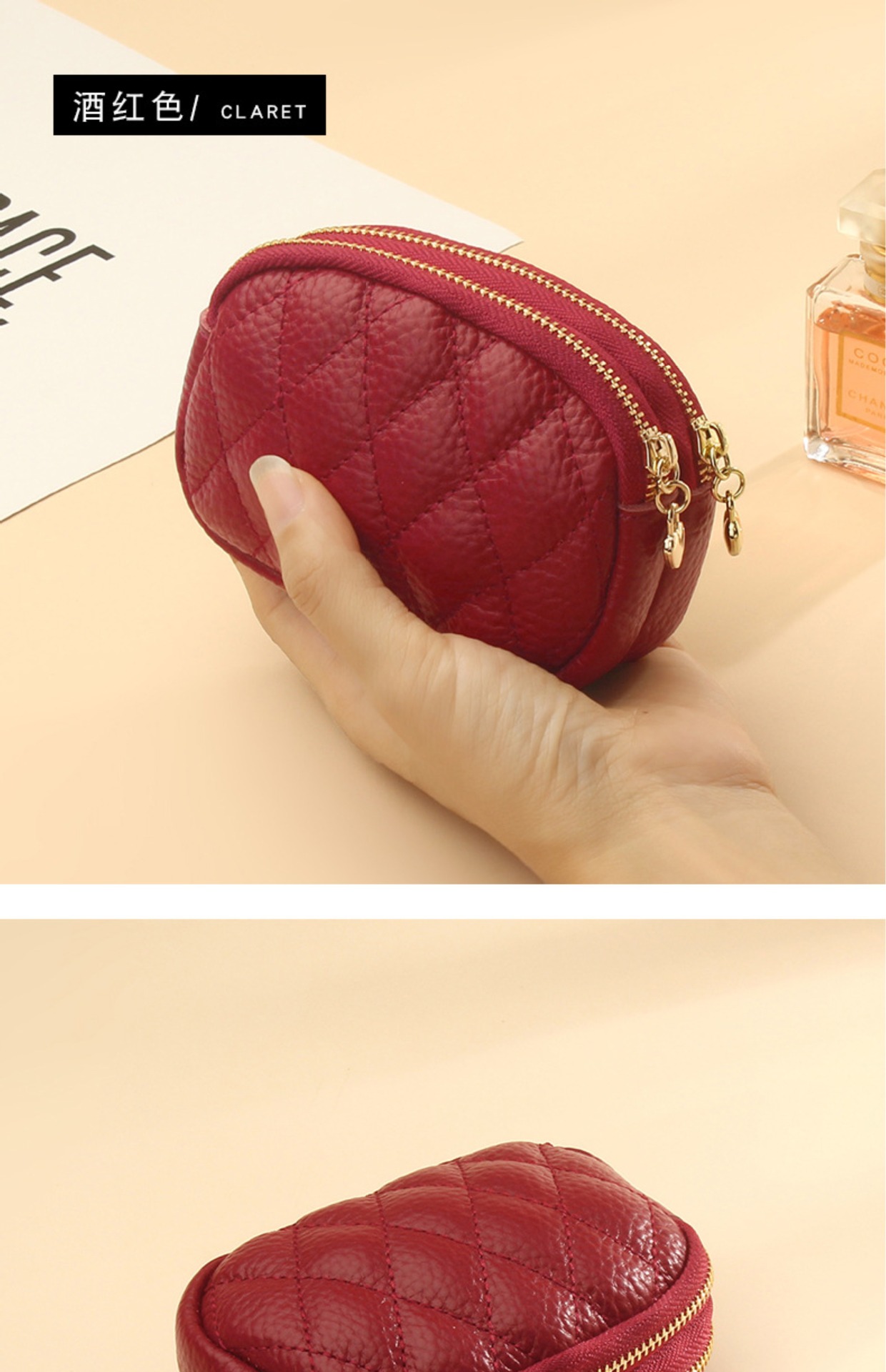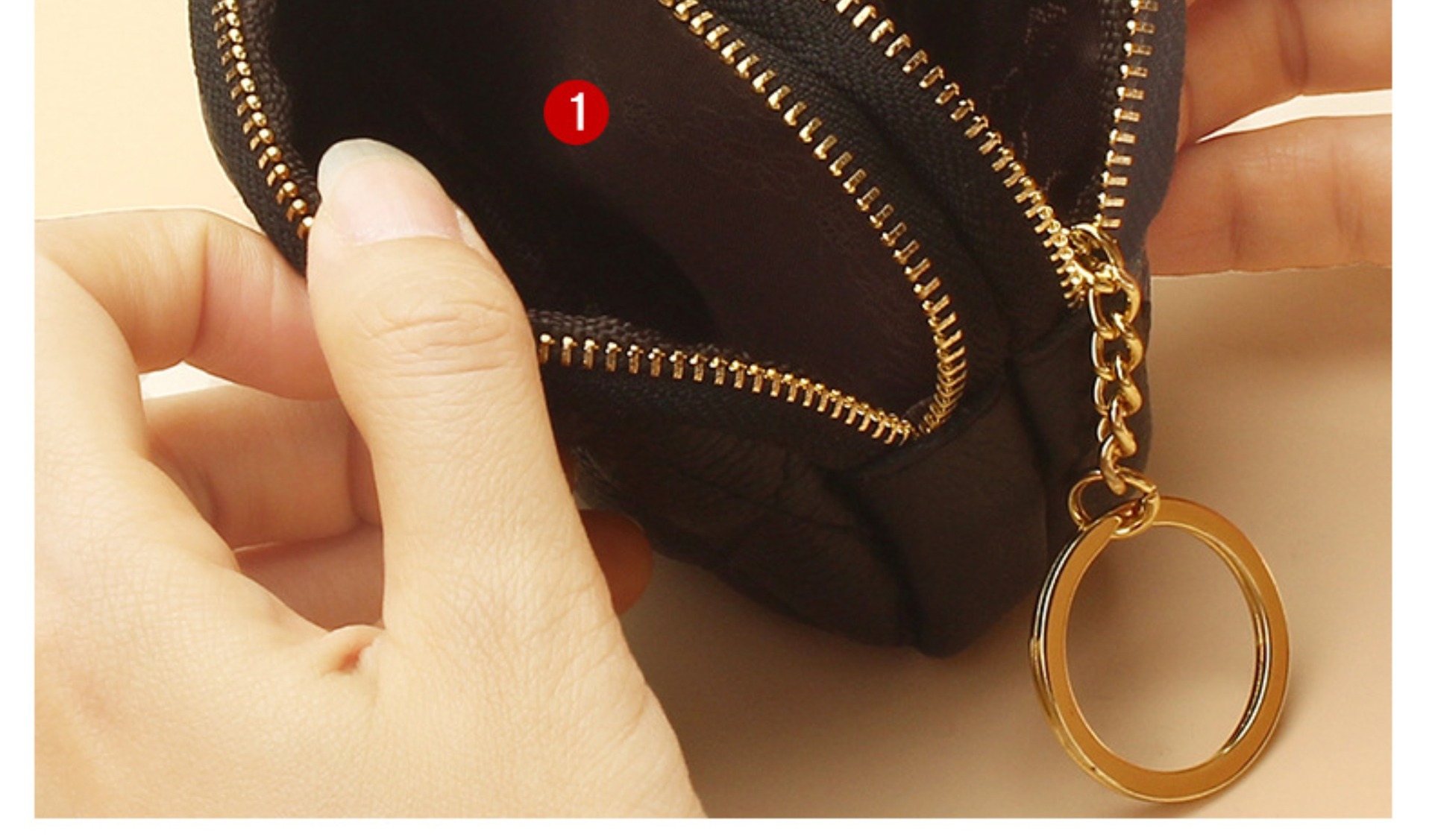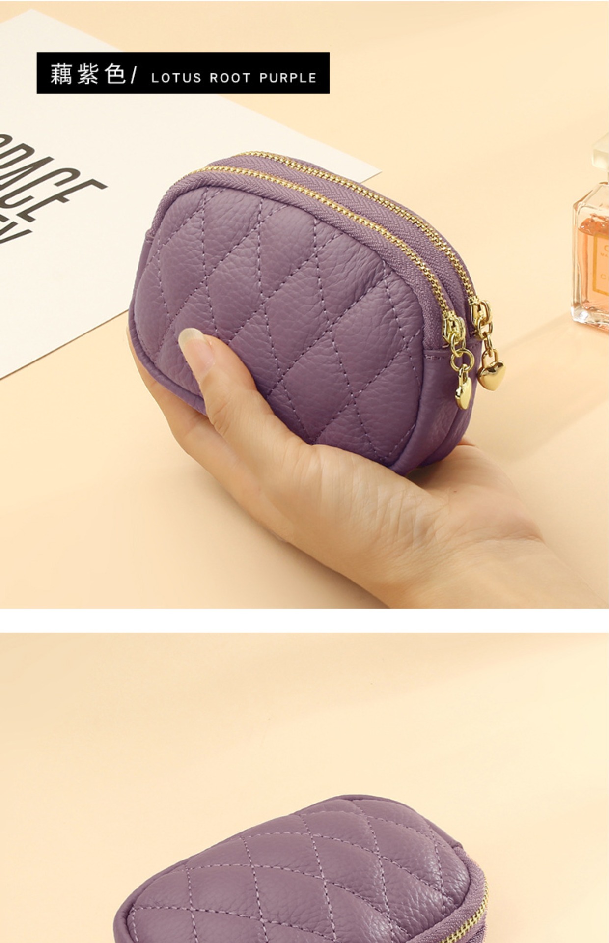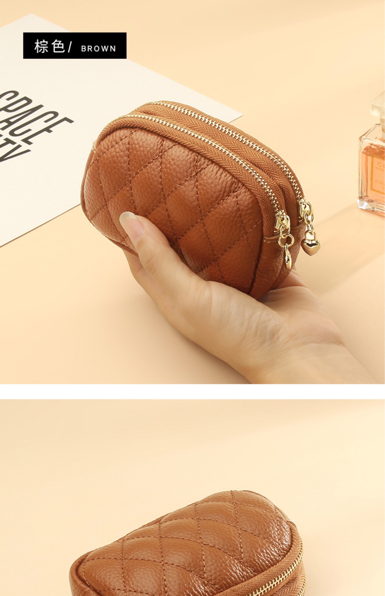 Monedero/llavero de doble cremallera con tarjetero para mujer