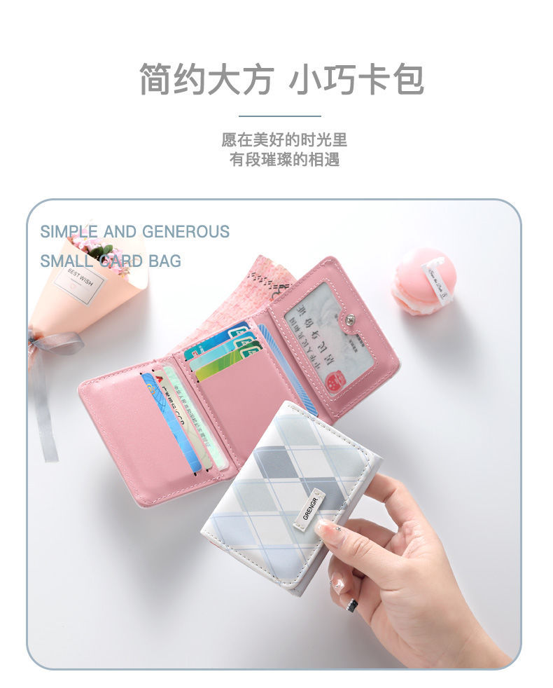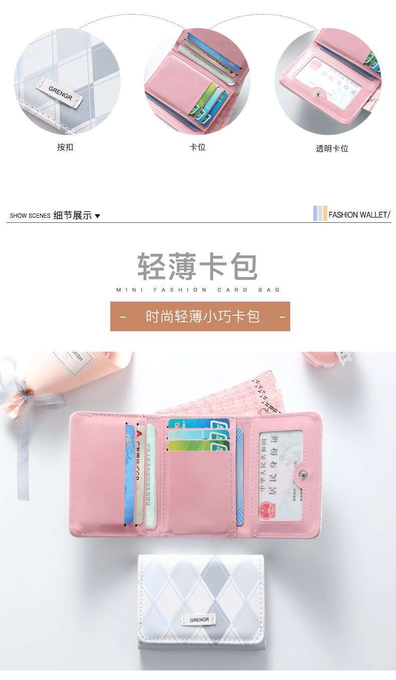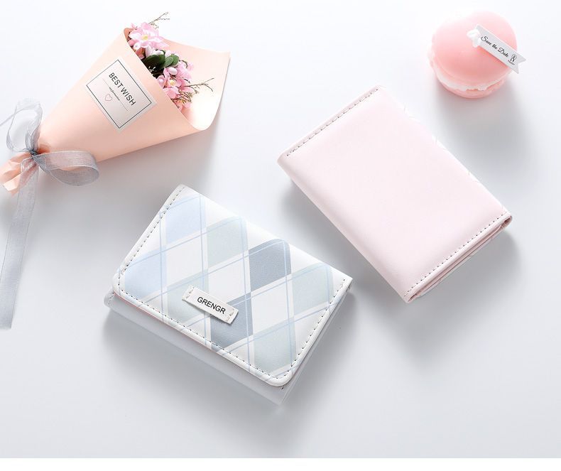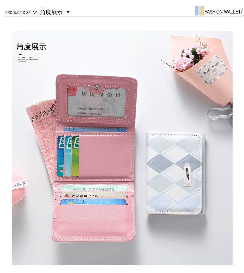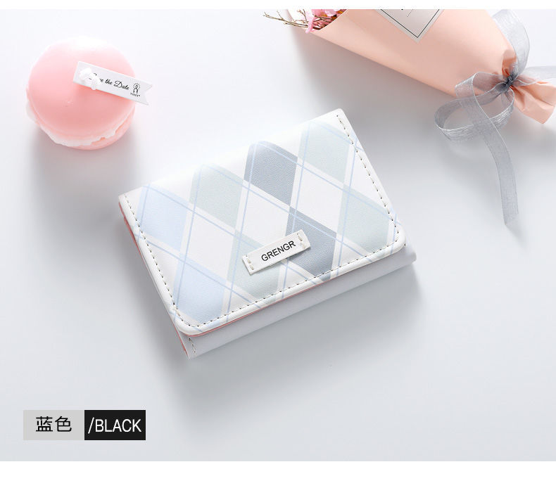 Buenas noches mercado sal marina azul a cuadros billetera fresca simple estilo ins billetera de estudiante multifuncional coreana titular de la tarjeta cero