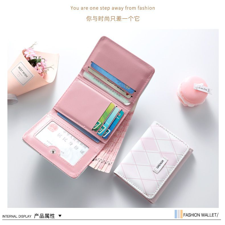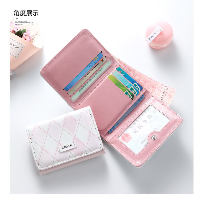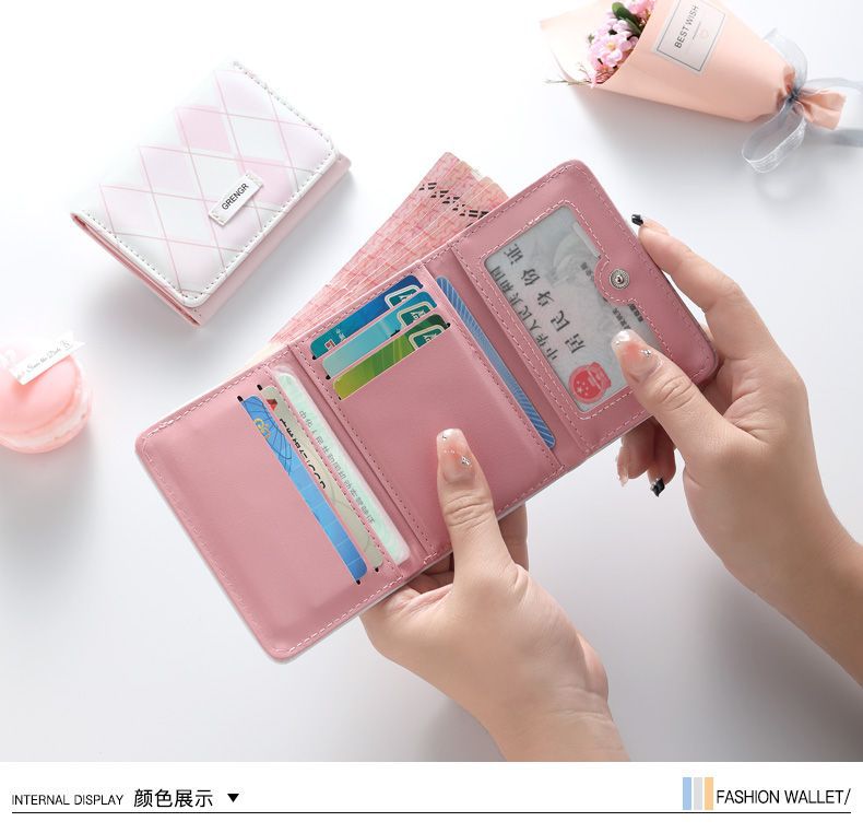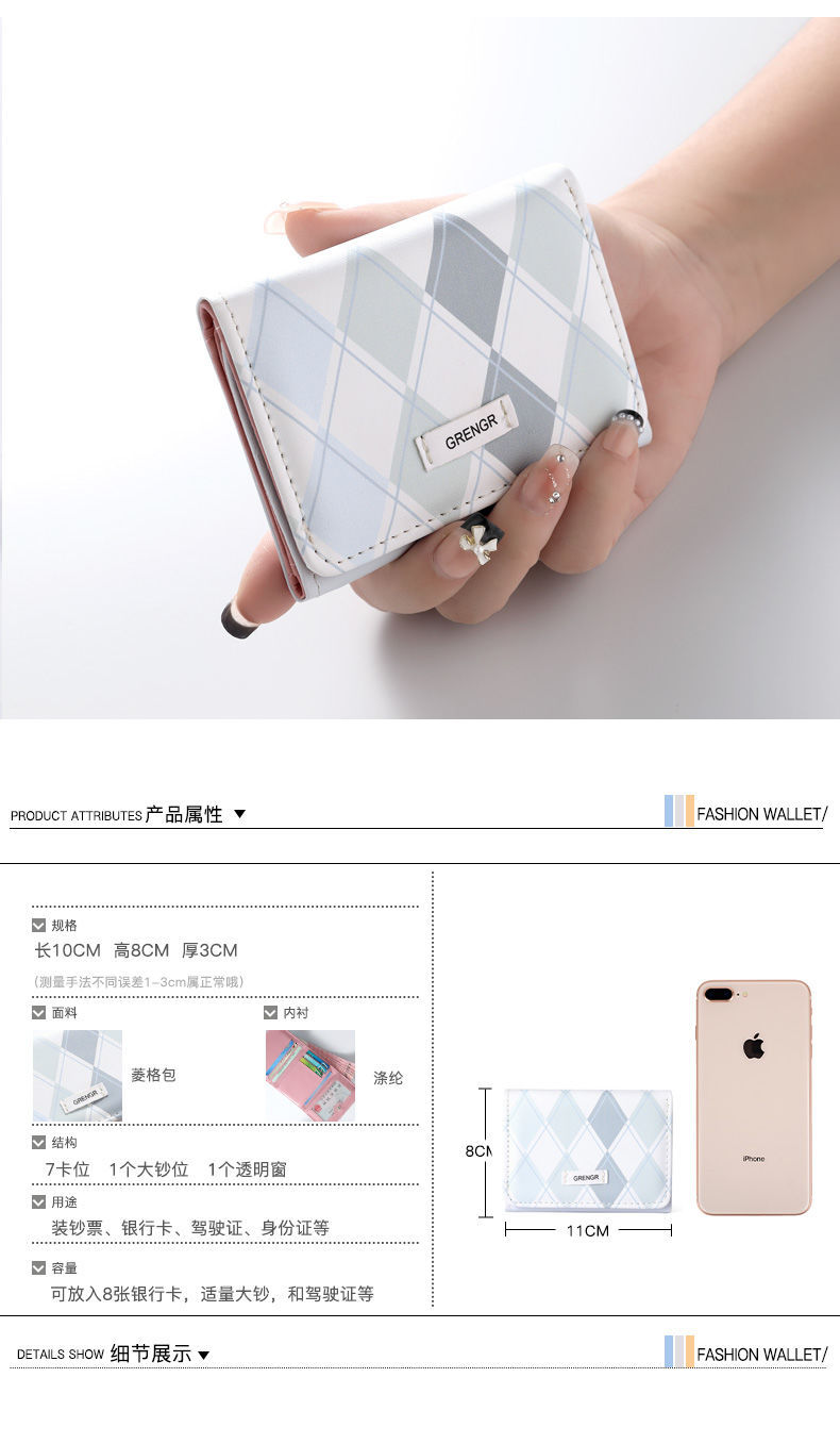 Buenas noches mercado sal marina azul a cuadros billetera fresca simple estilo ins billetera de estudiante multifuncional coreana titular de la tarjeta cero