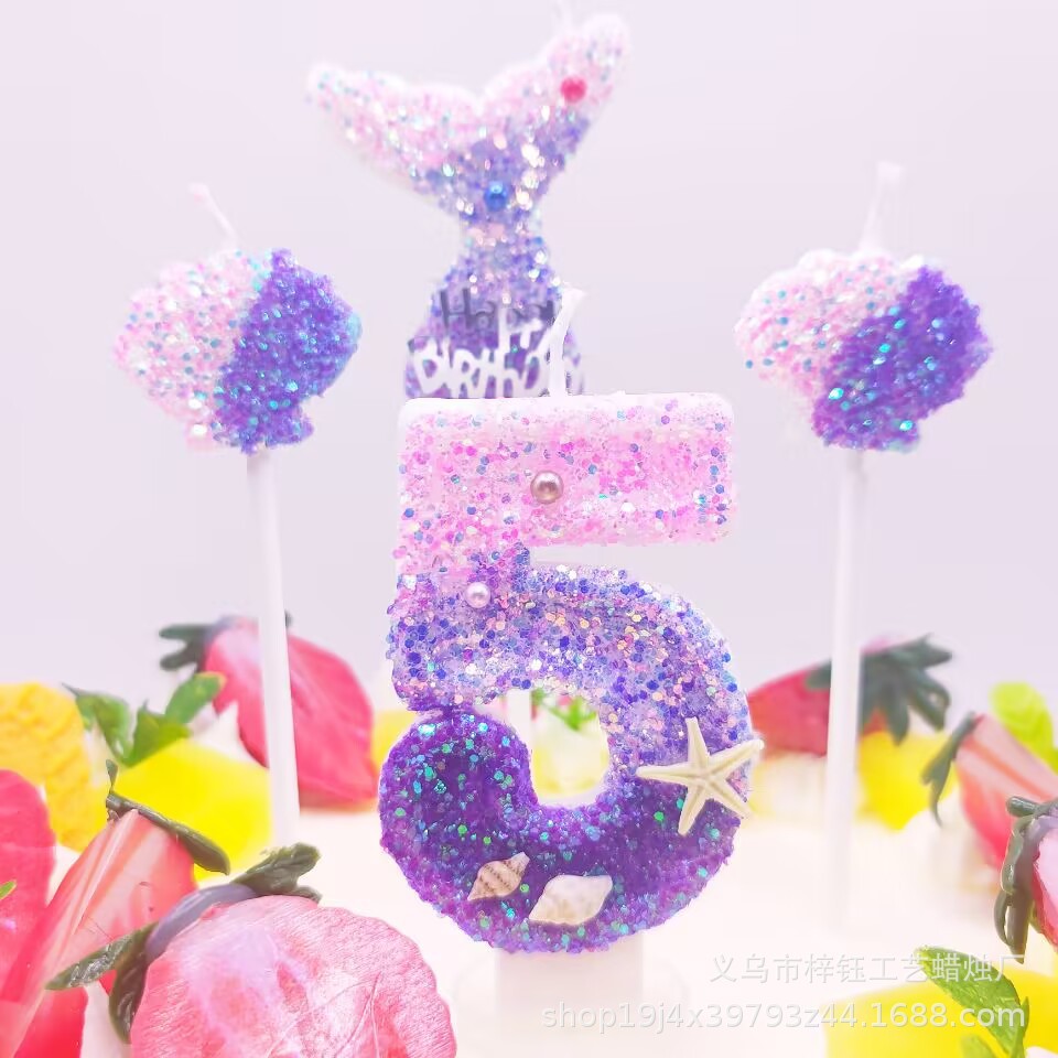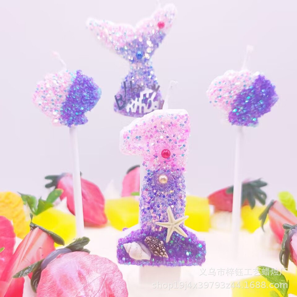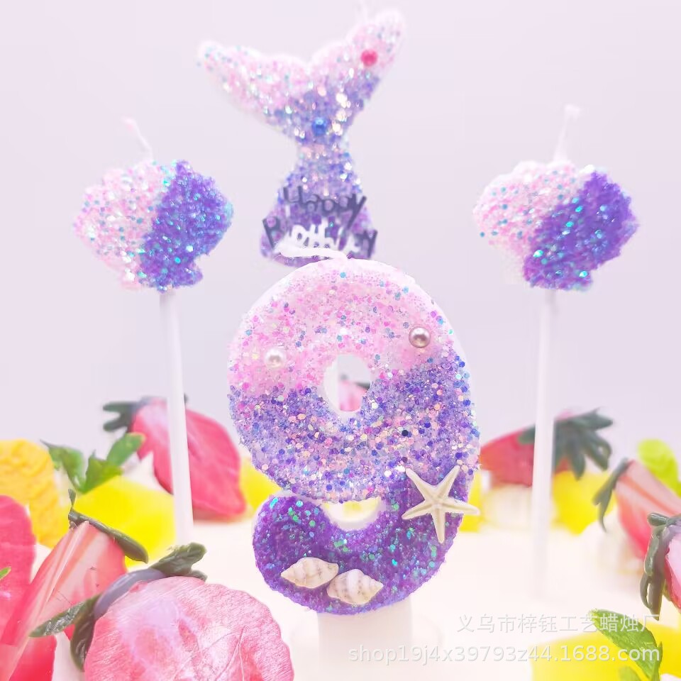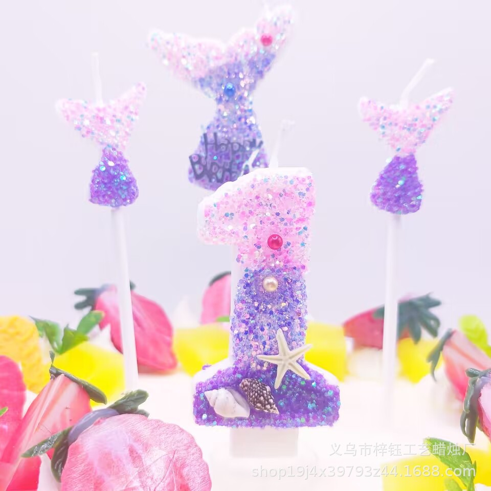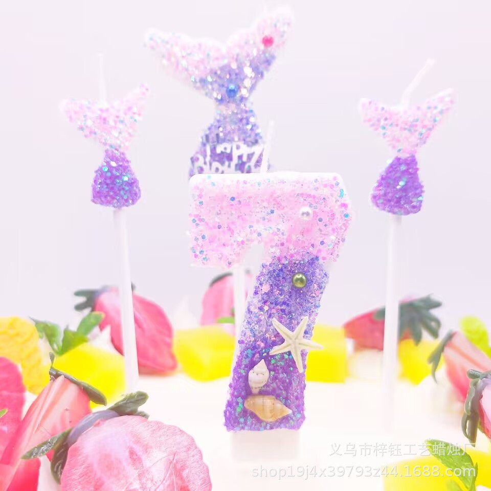 Creativa nueva sirena tema cumpleaños vela traje decoración de la torta Amazon Venta caliente partido fabricante original