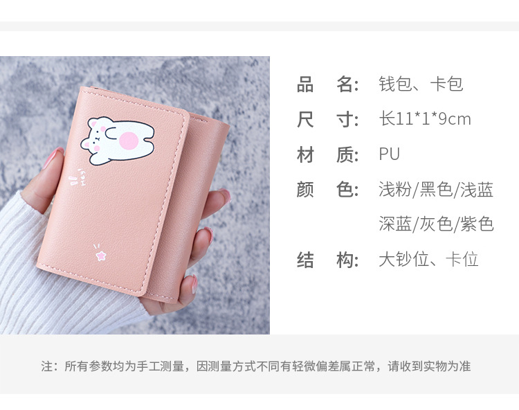 Nueva billetera de mujer de estilo coreano corto de dibujos animados lindo monedero tríptico bolsa de monedas billetera pequeña para niñas