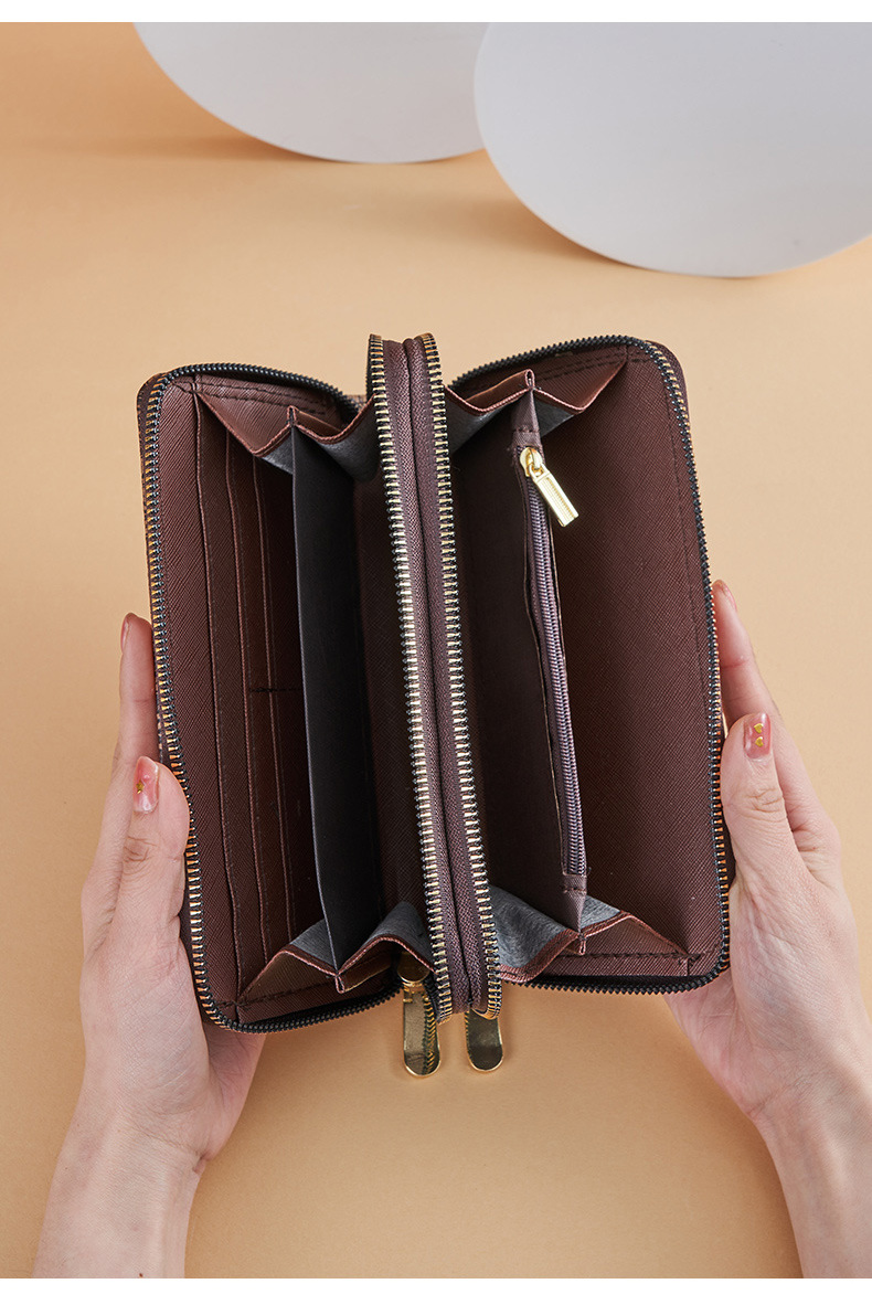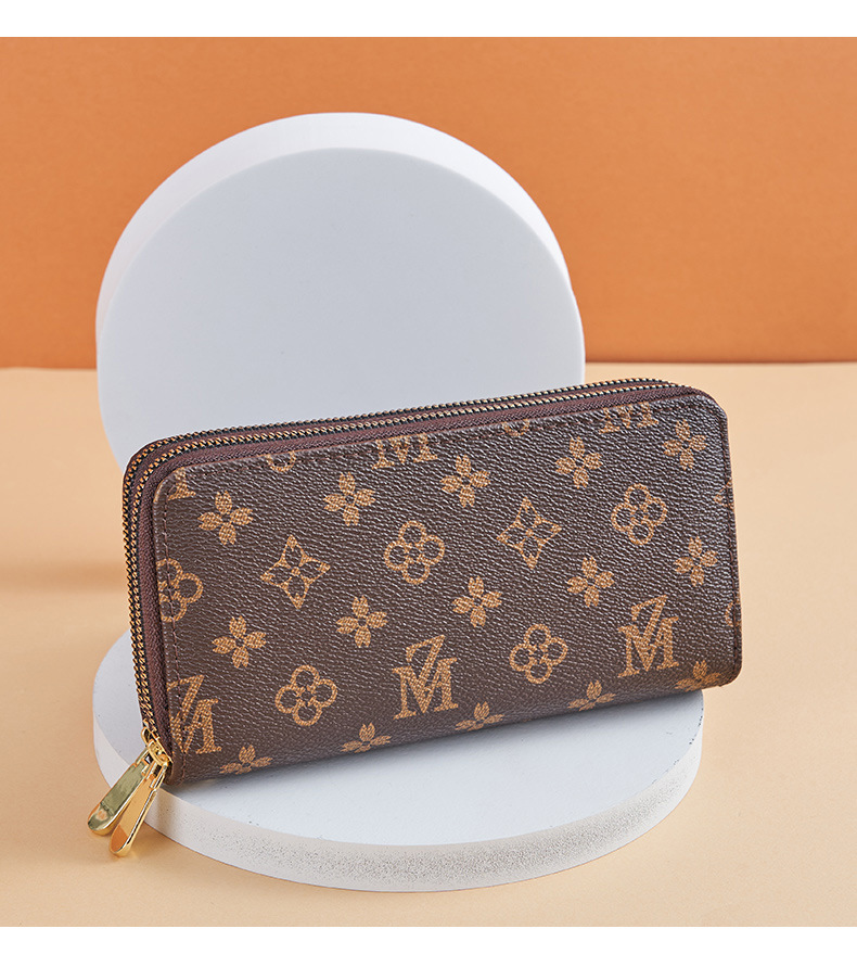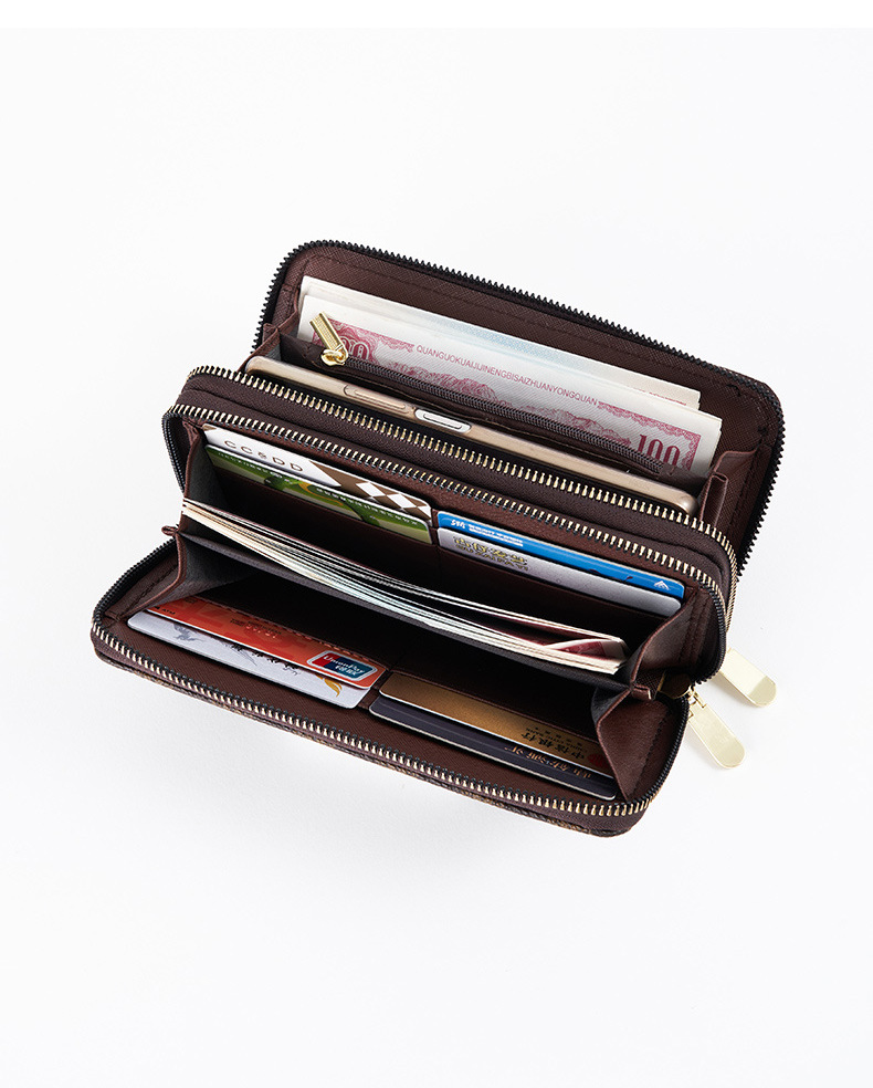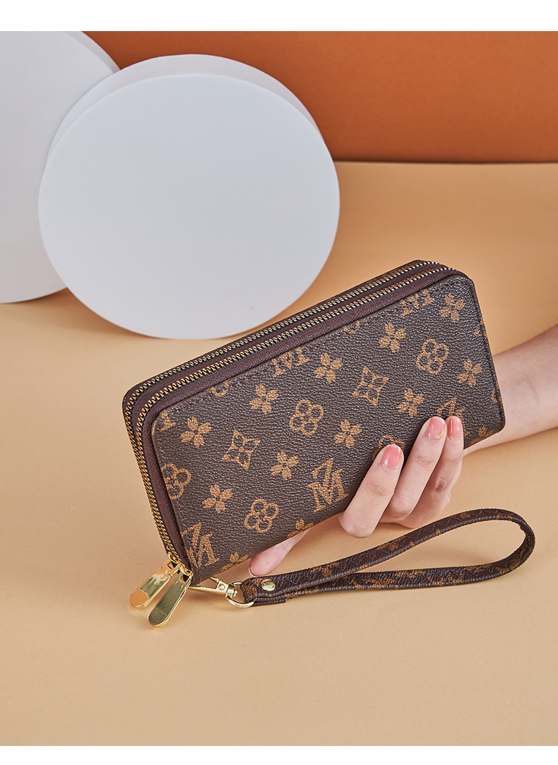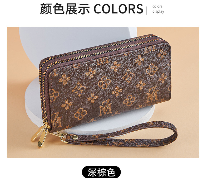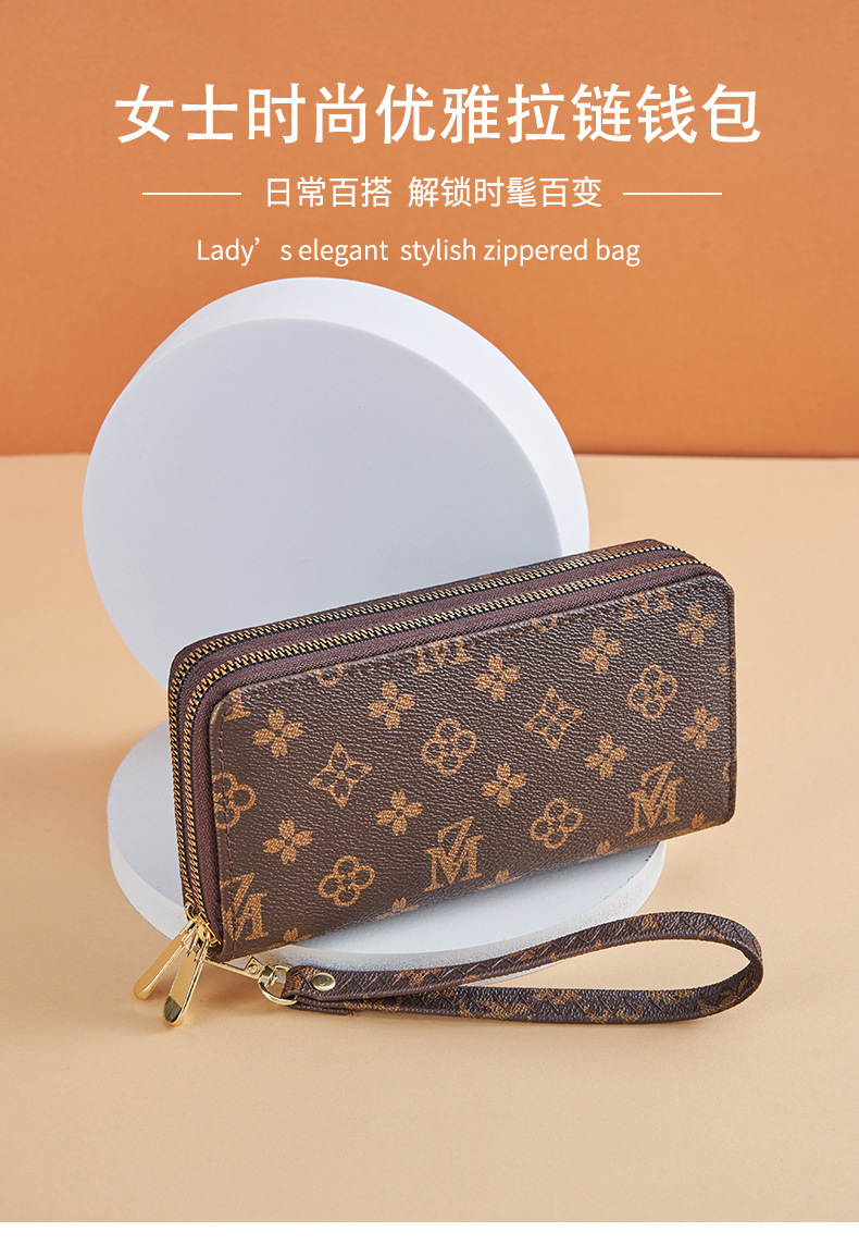 Cartera larga para mujer nueva 2025 popular europea y americana de gran capacidad con doble cremallera bolso para teléfono móvil bolso de mano con letras impresas