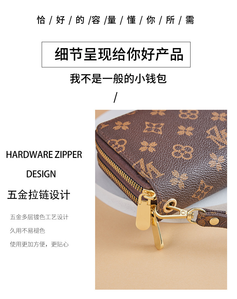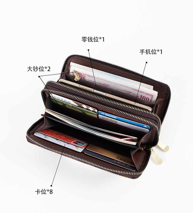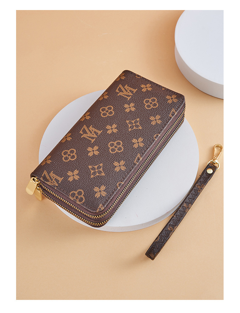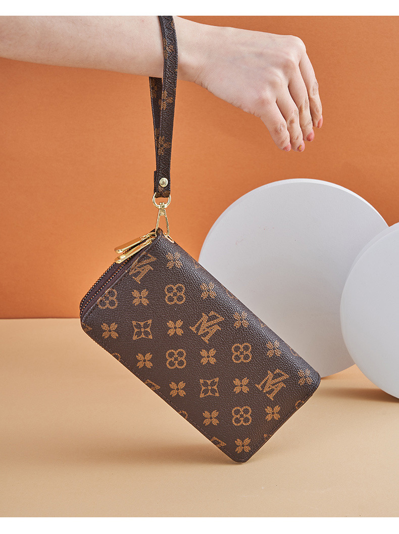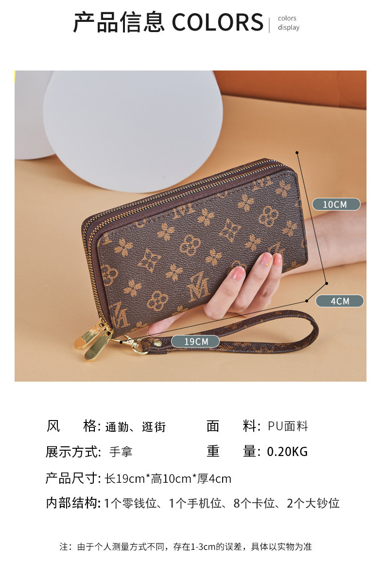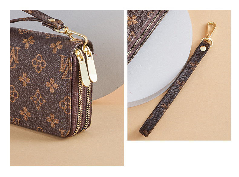 Cartera larga para mujer nueva 2025 popular europea y americana de gran capacidad con doble cremallera bolso para teléfono móvil bolso de mano con letras impresas