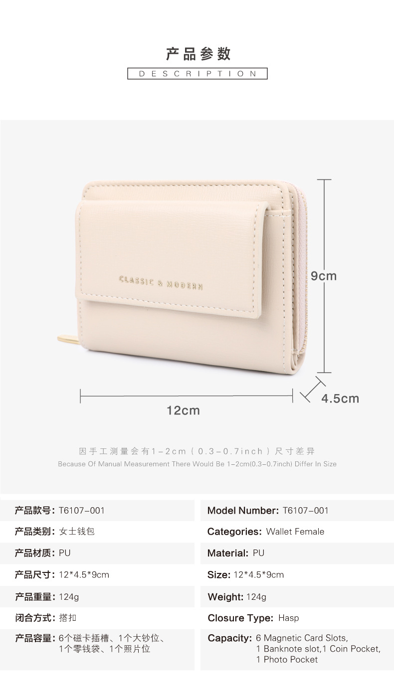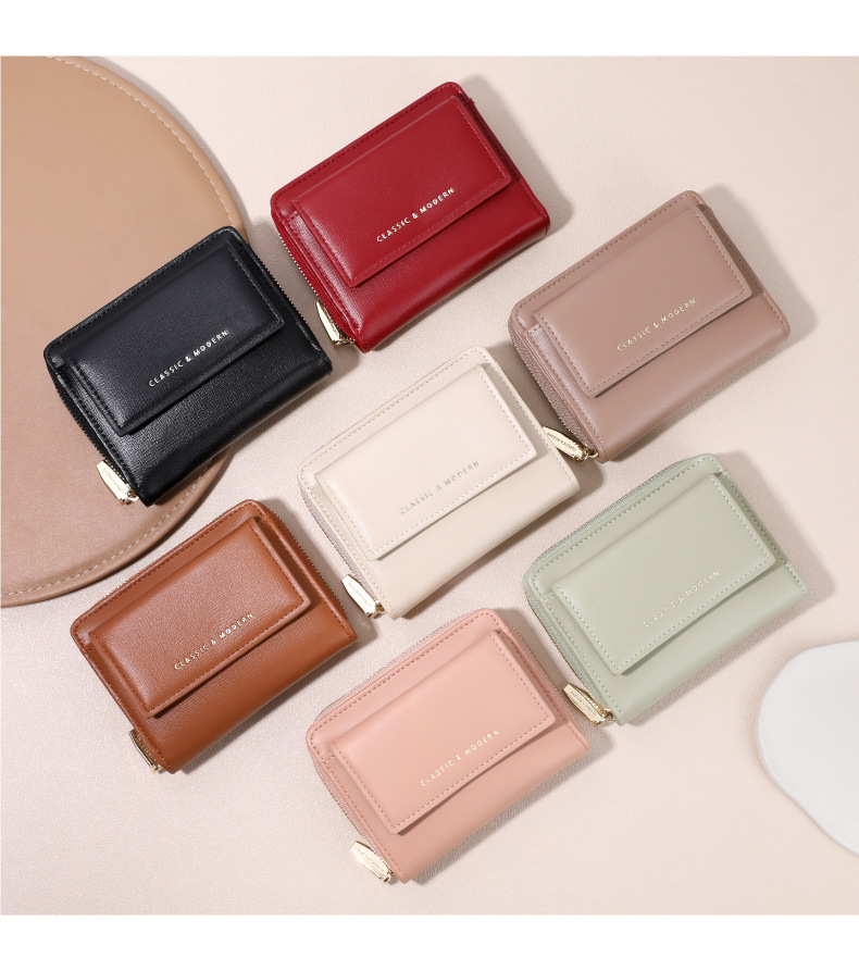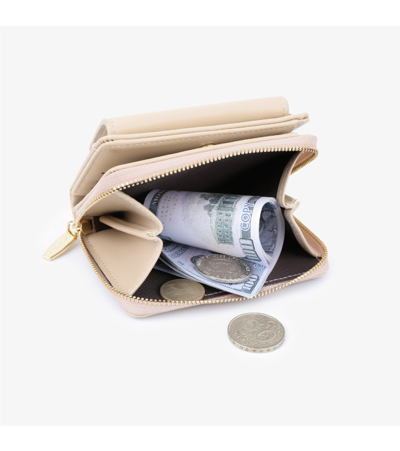 Bolso para tarjetas de franela de estilo caliente del sudeste asiático Monedero de tres pliegues de sentido premium Monedero de mujer multifuncional de gran capacidad