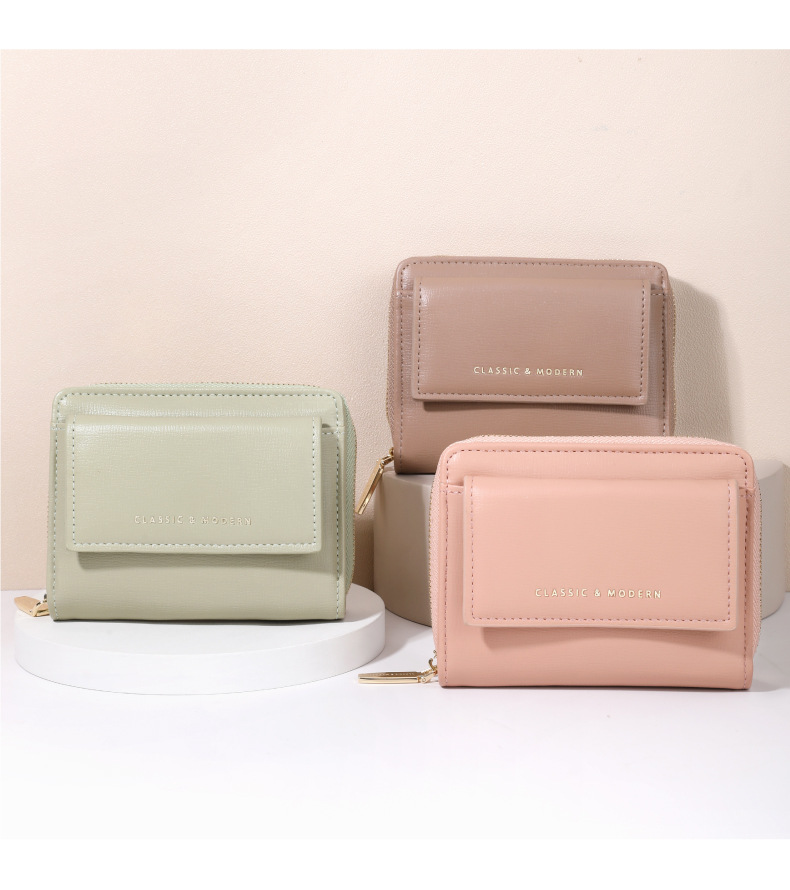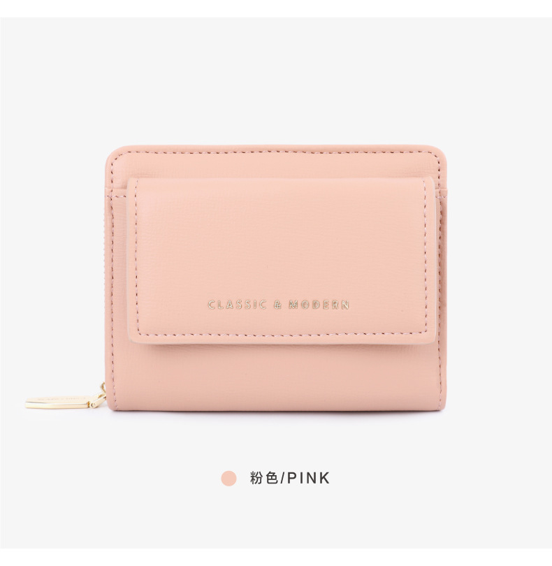 Cartera corta para mujer, tarjetero de color sólido, compacto y sencillo, monedero transfronterizo, moderno y versátil, color macarrón.