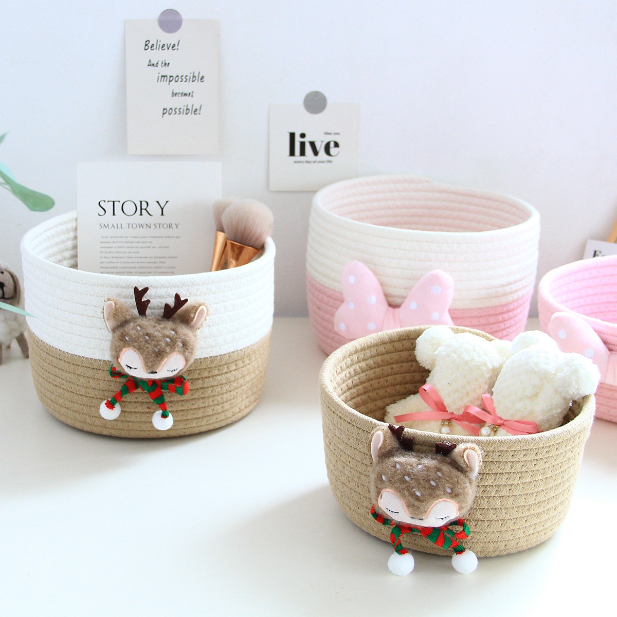| Color | Blanco lechoso-gran arco nudo cesta de almacenamiento,Cesta de almacenamiento de León amarillo-grande,Cesta de almacenamiento de ciervos caqui-bufanda,Cesta Rosa-grande del almacenamiento del arco |