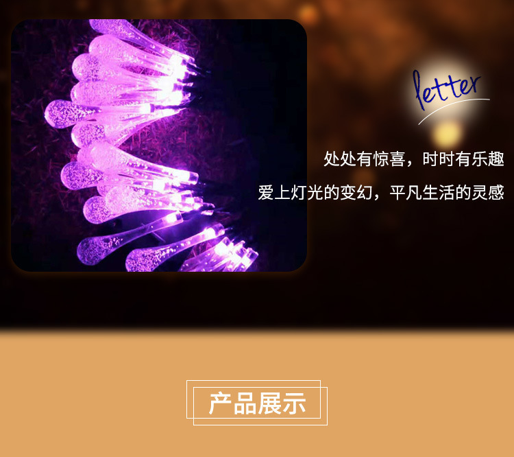 | Potencia | 3 M 10 luz solar 8 función pequeña gota de agua,3 M 10 luces solares 8 funciones gran gota de agua,5 M 20 luz solar 8 función pequeña gota de agua,5 M 20 luces solares 8 funciones gran gota de agua,6,5 M 30 luz solar 8 función pequeña gota de agua,6,5 M 30 luces solares 8 funciones grandes gotas de agua,7 M 50 lámpara solar 8 función pequeña gota de agua,7 M 50 lámpara solar 8 función gran gota de agua,12 M 100 luz solar 8 función pequeña gota de agua,12 M 100 luz solar 8 función gran gota de agua |