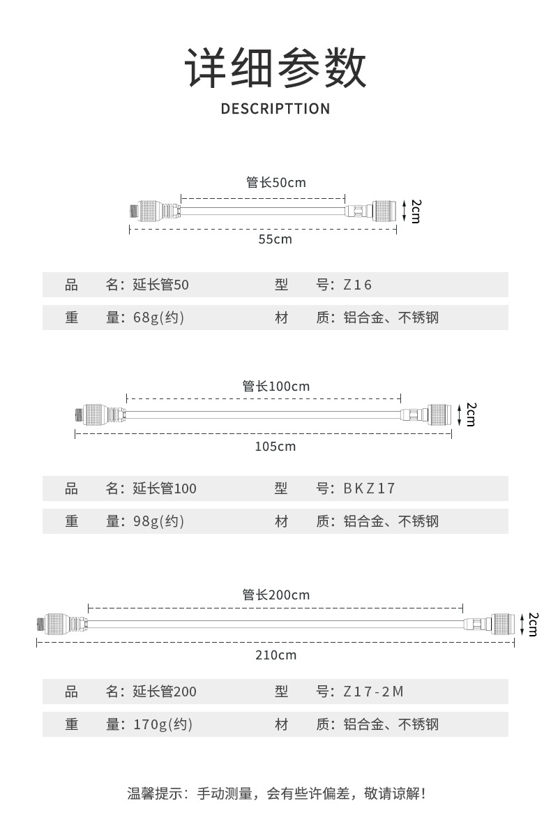 | Colores | Z17,Z16,[Z17-2M] Tubo de extensión 2 metros |