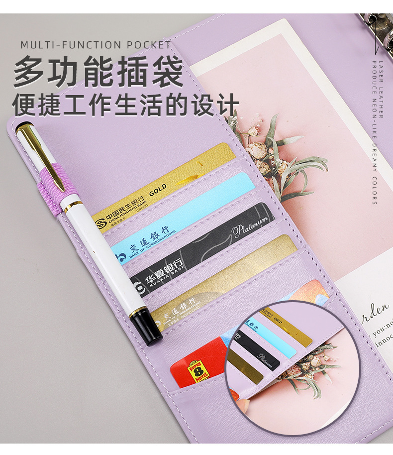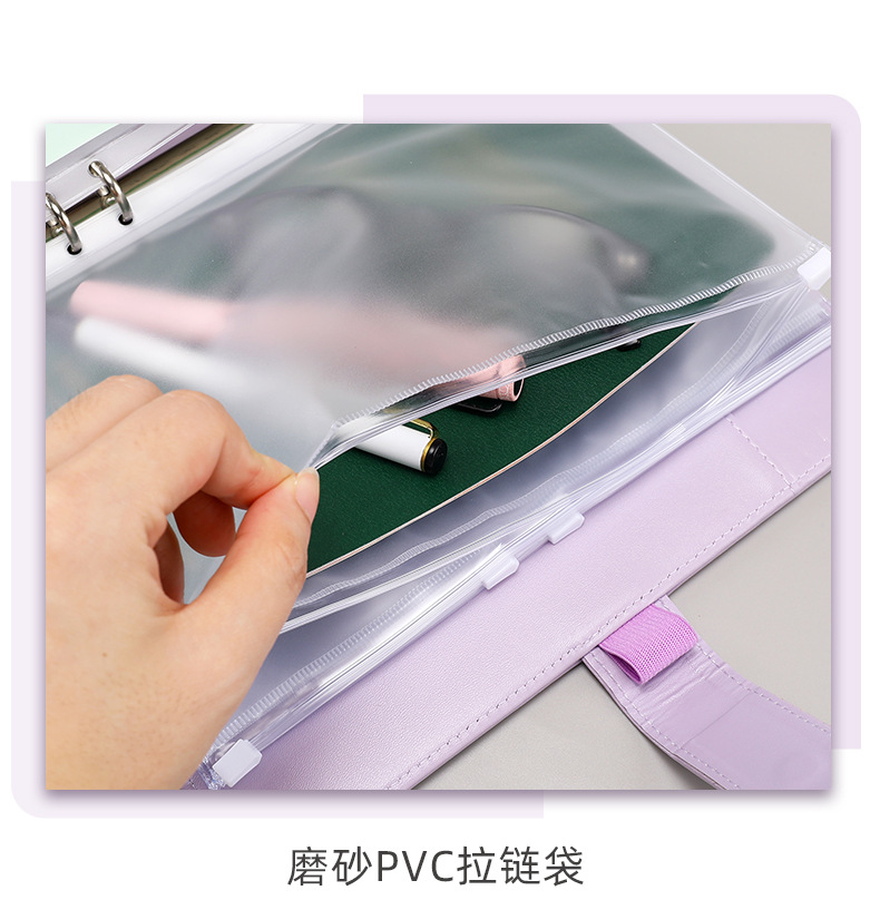 | Colores de la cubierta | A5 púrpura 10 bolsas con cremallera,A5 azul 10 bolsas con cremallera,A5 rosa 10 bolsas con cremallera,A5 blanco 10 bolsas con cremallera,(A5 versión más grande) Bolsa de cremallera púrpura 10,(A5 Plus) Bolsa azul con cremallera de 10 unidades,(A5 Plus) Bolsa rosa con cremallera de 10 unidades,(A5 modelos más grandes) 10 bolsas con cremallera |