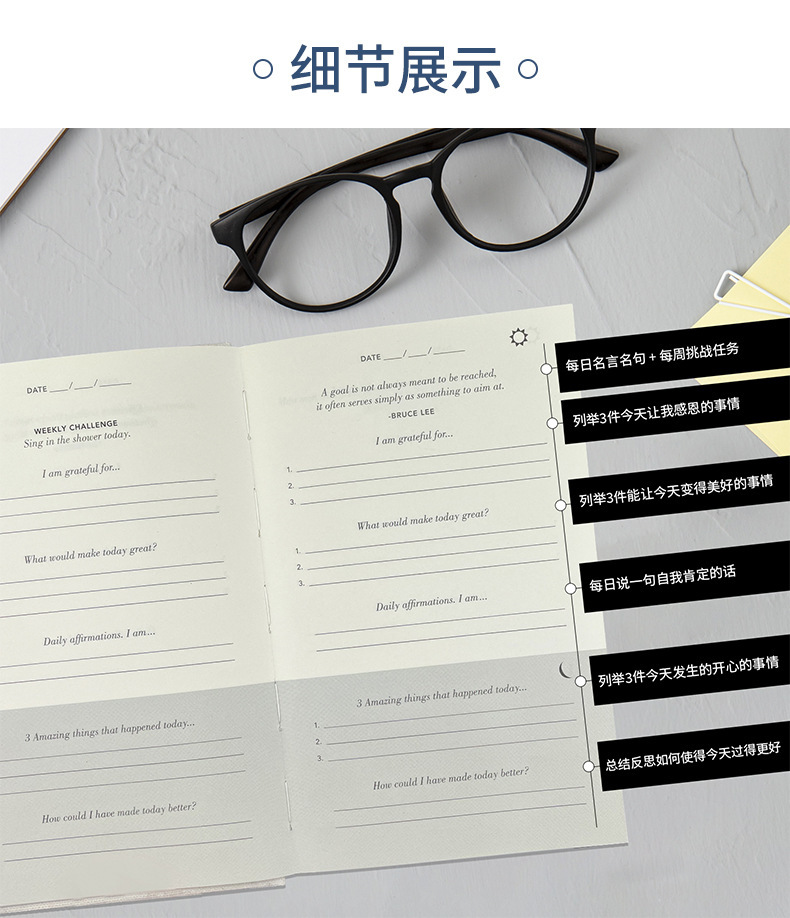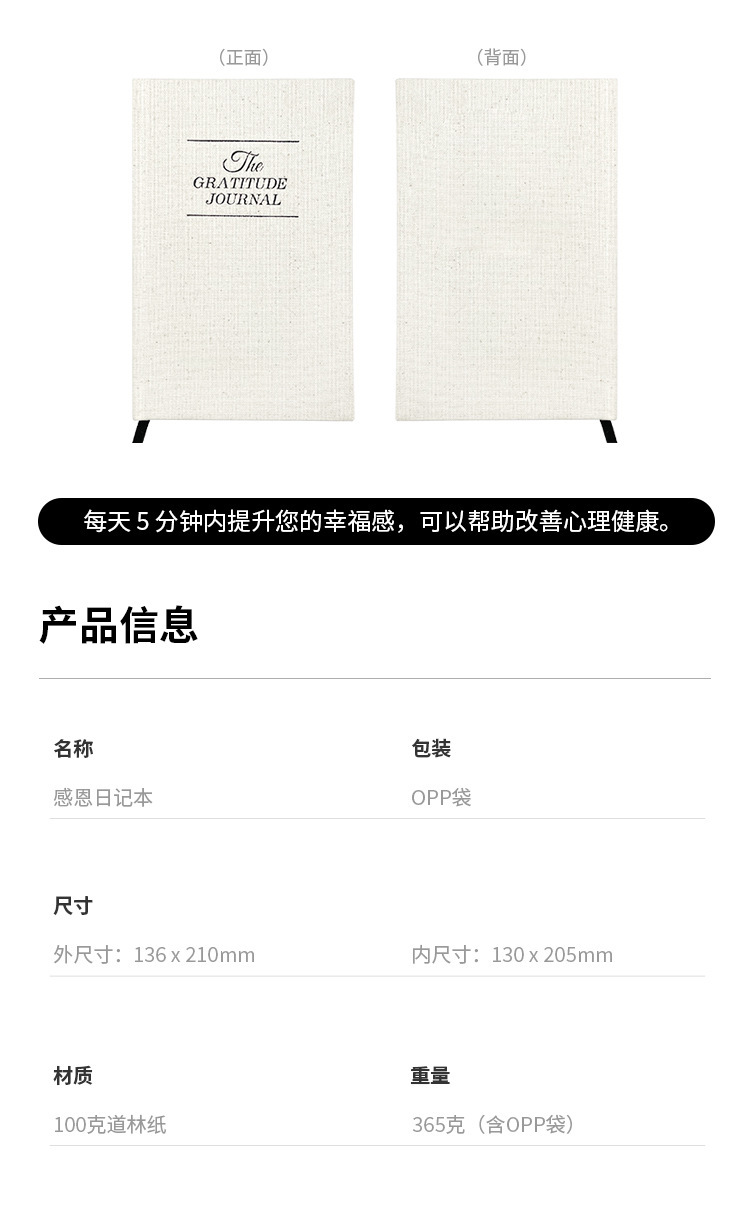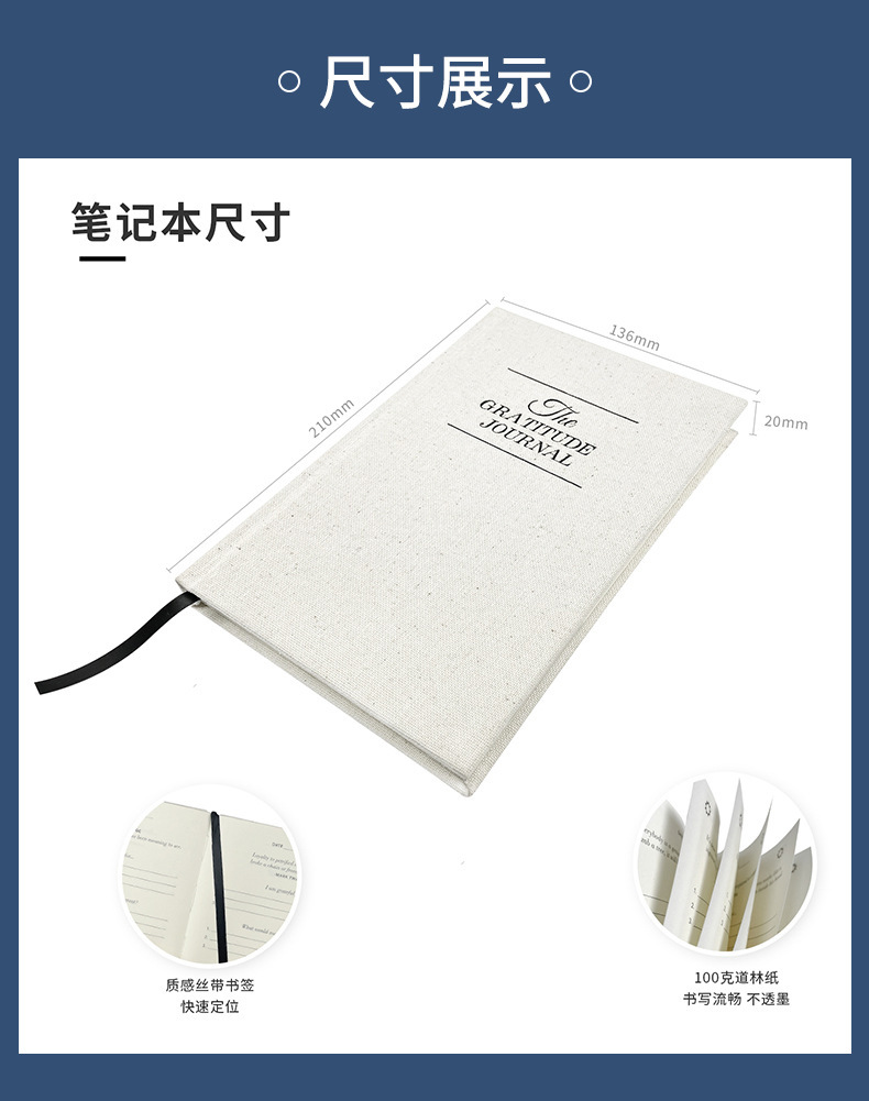 Diario de gratitud transfronterizo con cubierta de lino, cuaderno de papel Dowling engrosado, cuaderno de tapa dura A5 para negocios, venta al por mayor