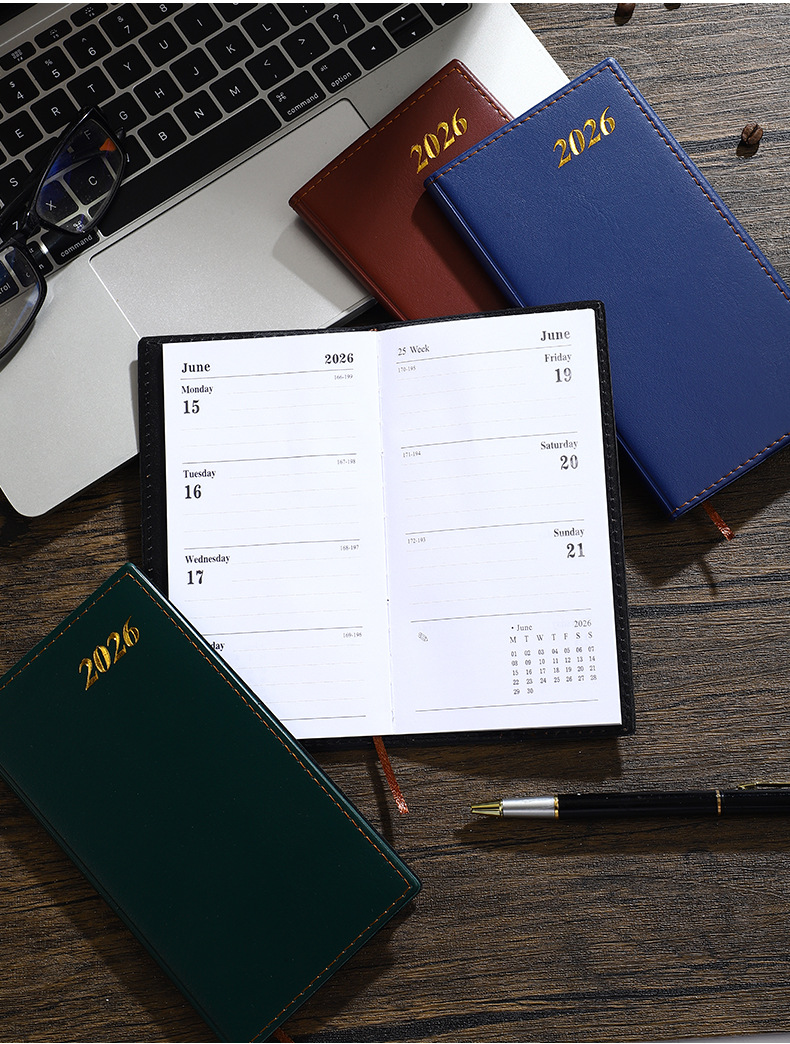 Calendario en inglés 2025 Plan semanal de gestión de tiempo transfronterizo de 365 días Manual de eficiencia del portátil de cuero A6