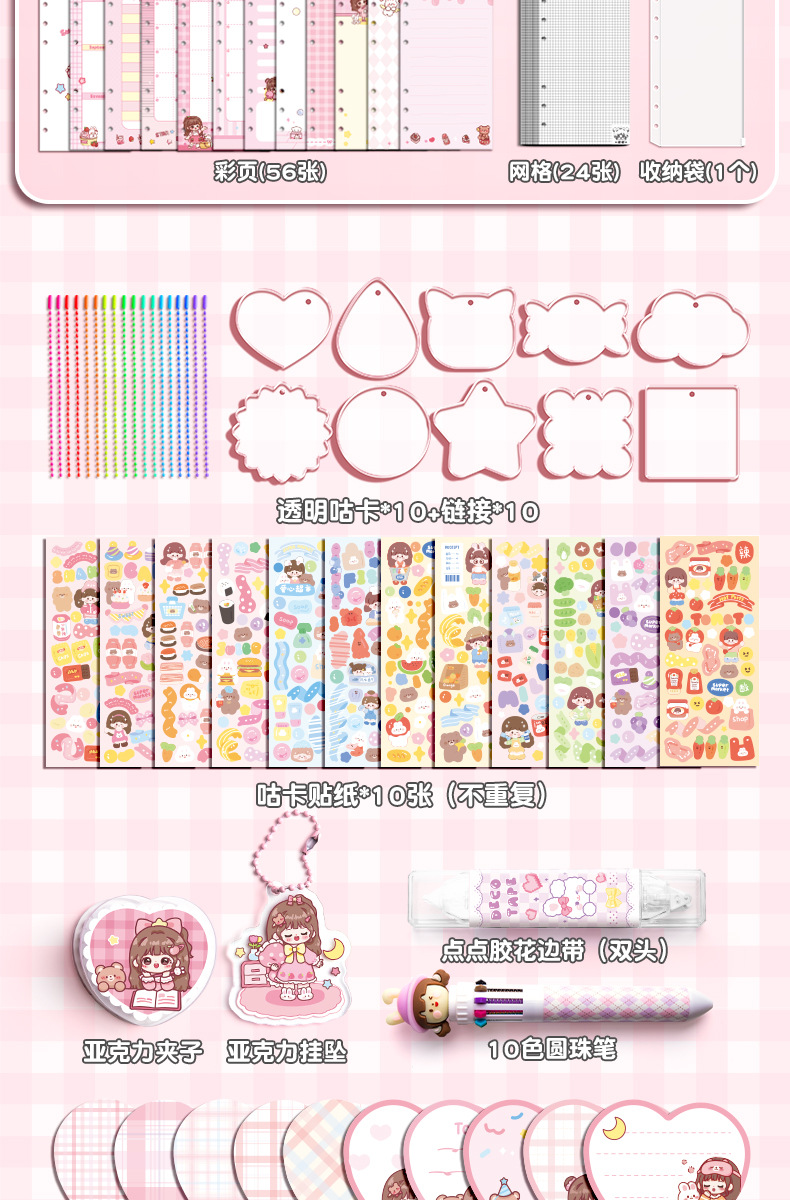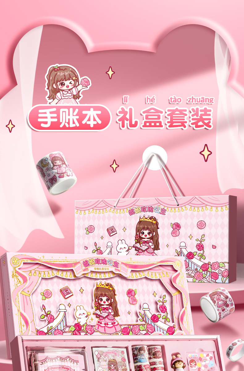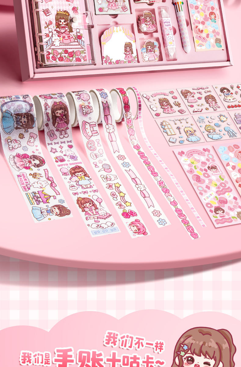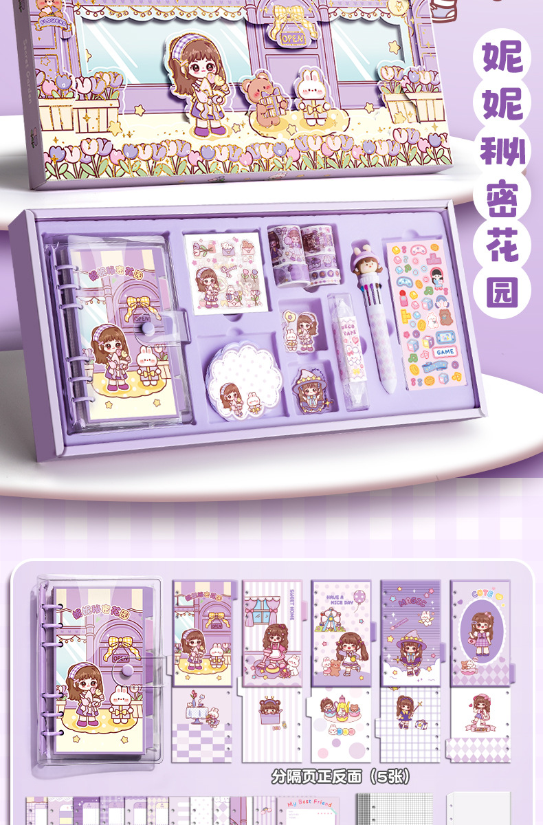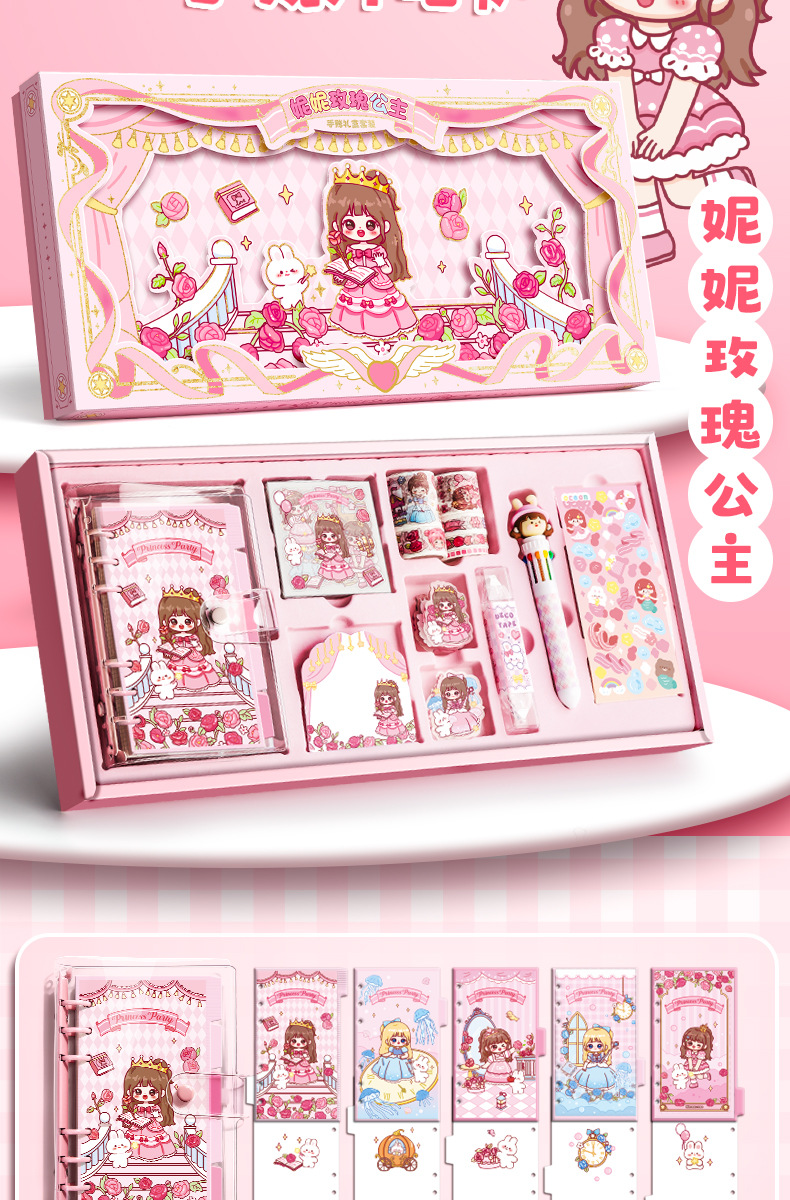 Estudiante creativo diario colorido bolígrafo caja de regalo cinta cuaderno traje 3D dibujos animados escritura libro en stock