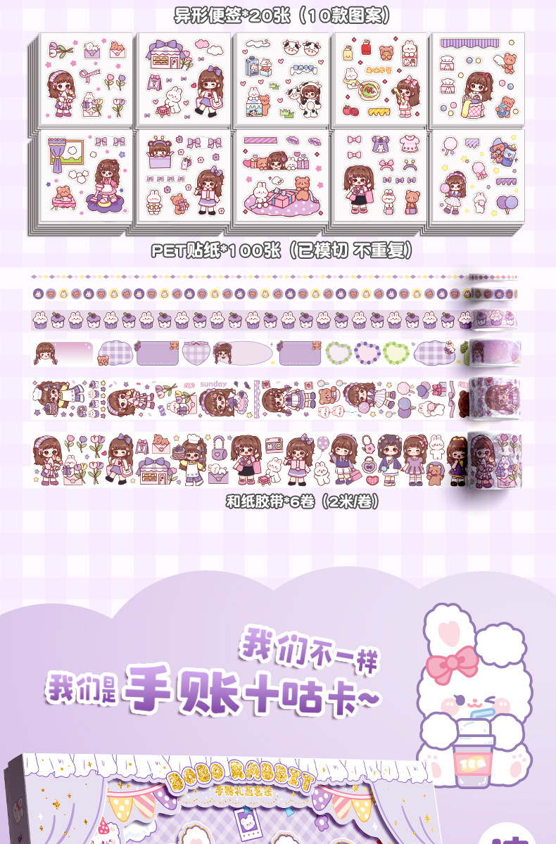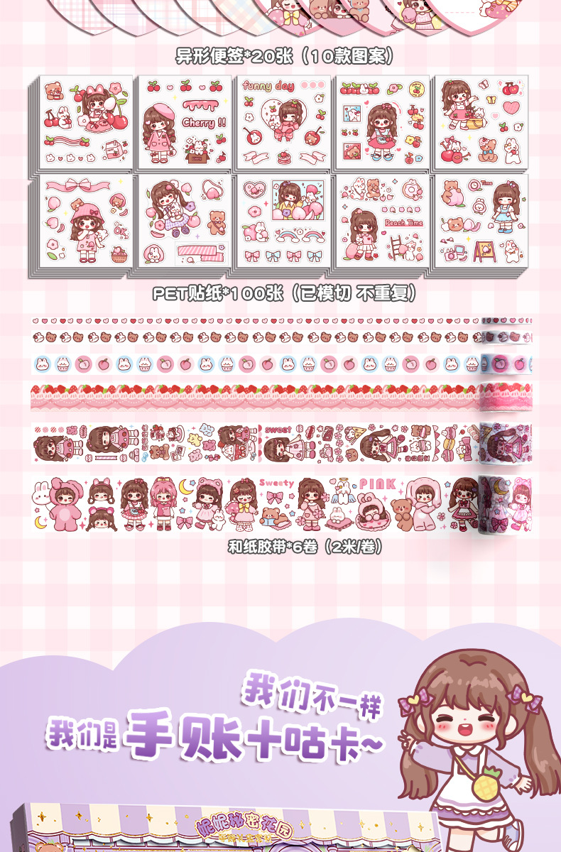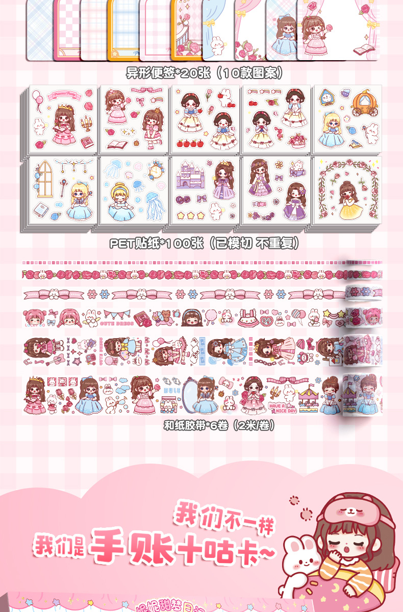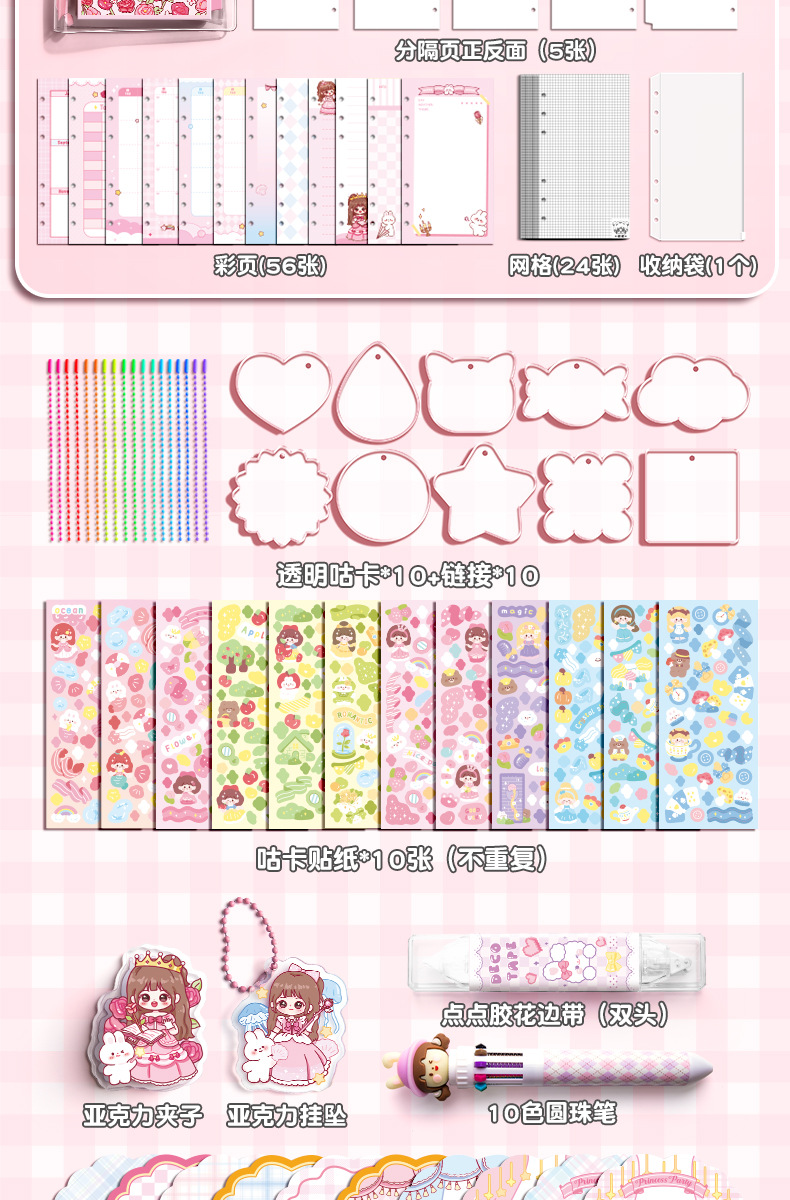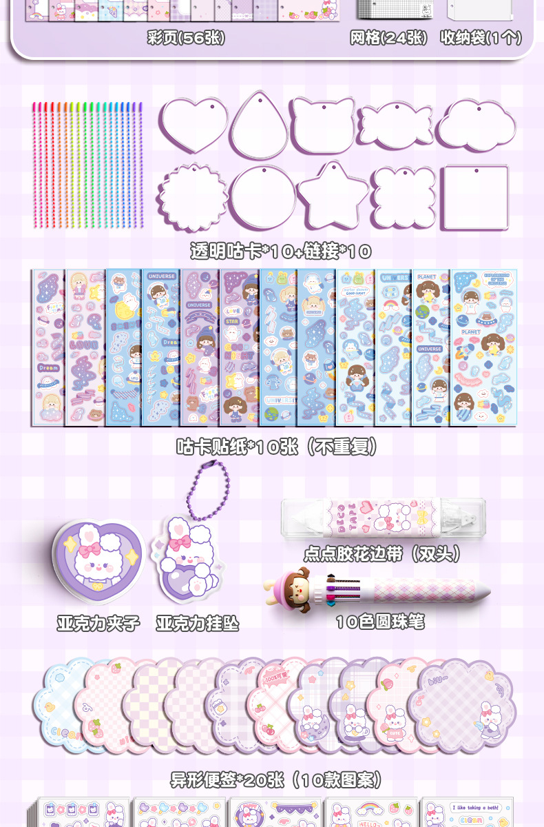 Estudiante creativo diario colorido bolígrafo caja de regalo cinta cuaderno traje 3D dibujos animados escritura libro en stock