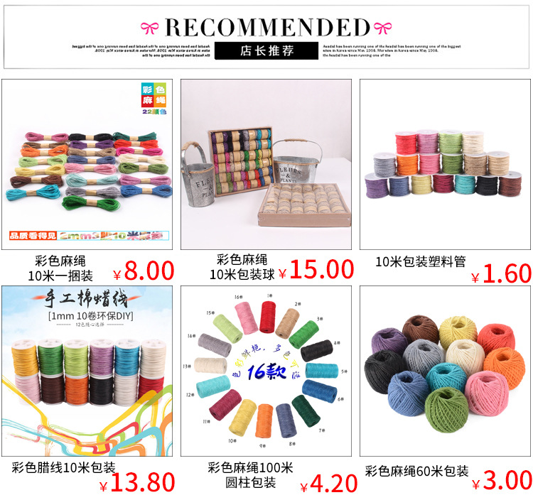 | Modelo de especificación | 1. Verde * 20 m/paquete,2. Rosa roja * 20 metros/paquete,3. Rosa * 20 m/paquete,4. verde oscuro * 20 m/paquete,5. Rojo * 20 m/paquete,6. Marrón * 20 m/paquete,7. Azul cielo * 20 m/paquete,8. beige * 20 m/paquete,9. Negro * 20 m/paquete,10. Blanco * 20 m/paquete,11. Púrpura claro * 20 metros/paquete,12. Azul * 20 m/paquete,13. Naranja * 20 metros/paquete,14. Amarillo claro * 20 metros/paquete,15. Color natural * 20 metros/paquete,16. Amarillo oscuro * 20 metros/paquete |