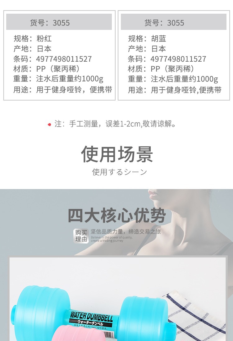 Japón importó mancuernas de agua genuinas de plástico portátil para niños y mujeres fitness en casa práctica glúteos para bajar de peso mancuernas