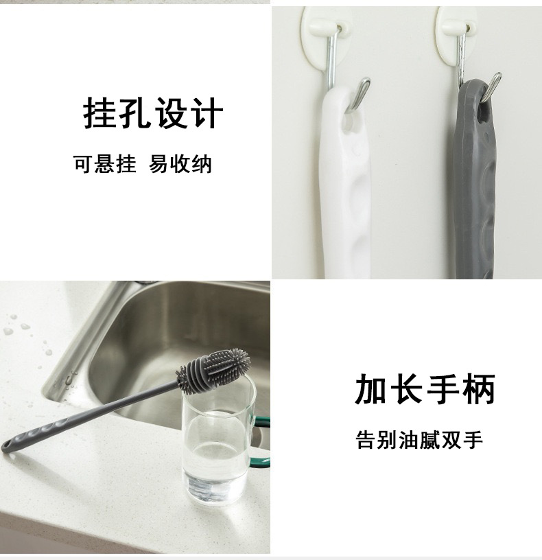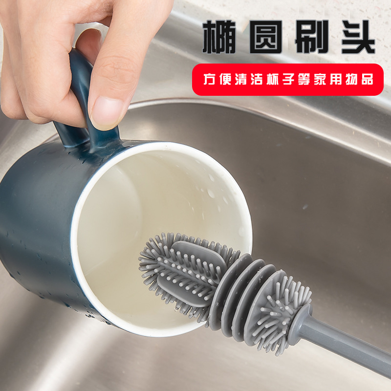 Cepillo de taza personalizado, cepillo para botellas, cepillo de artefacto de mango largo de silicona de calidad alimentaria, cepillo de silicona para tazas, cepillo de limpieza, puesto de calle al por mayor