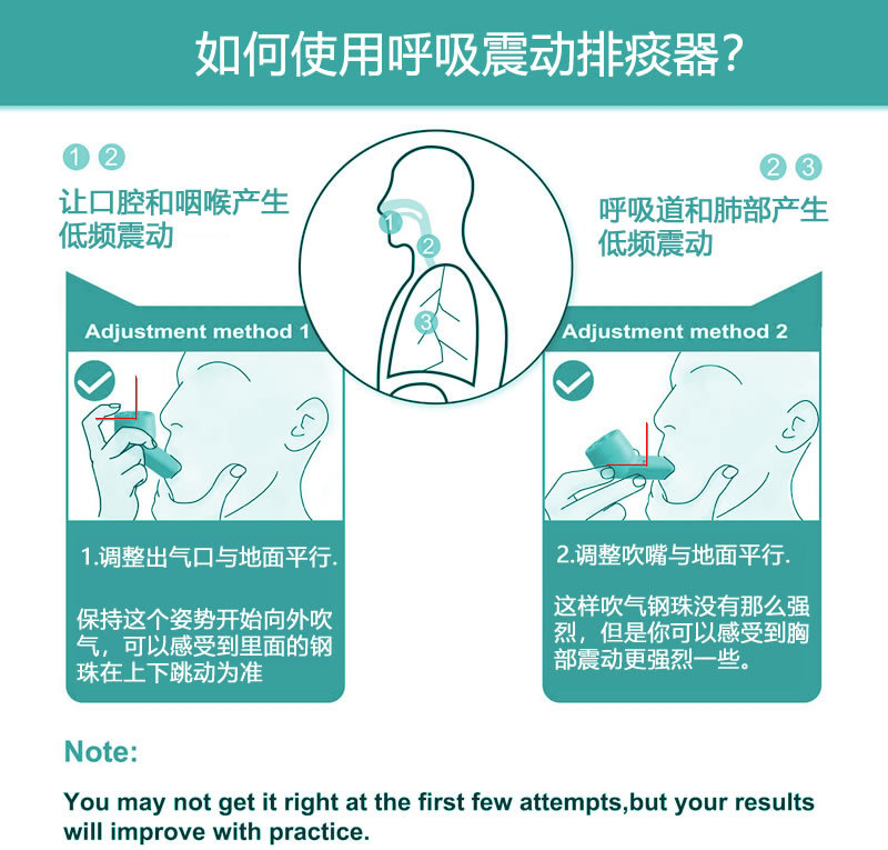 Dispositivo de expectoración de vibración de respiración de Huatang flauta pulmonar instrumento de compensación de pulmón entrenador de respiración esputo limpiando entrenador de respiración pulmonar