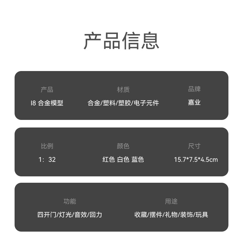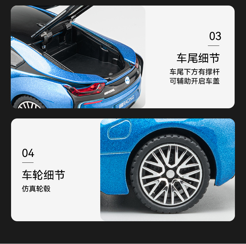 | Color | Paquetes de 1:32 Ma i8 Blanco,1:32 paquetes de Ma i8 Azul,1:32 packs de caballo i8 Rojo,Calibre de caja |