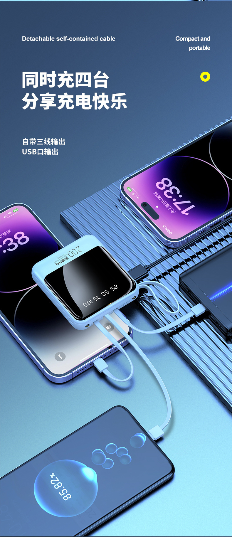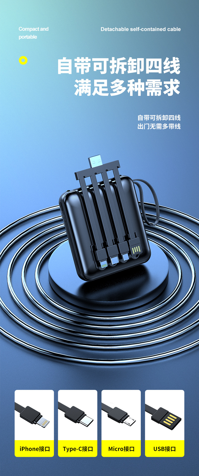 | Función | Pequeño y portátil,Con hebilla para colgar,Con linterna LED,tres en uno,Salida multi-U puerto |