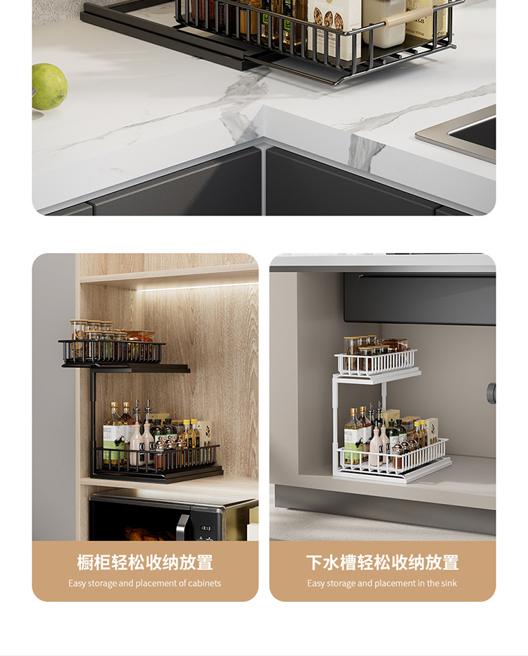 | Número de capas (especificaciones) | Marco de extracción del fregadero inferior reforzado (blanco),Marco de extracción del fregadero inferior reforzado (negro),Las capas superior e inferior se pueden tirar en altura ajustable (negro),Las capas superior e inferior se pueden tirar en altura ajustable (blanco) |