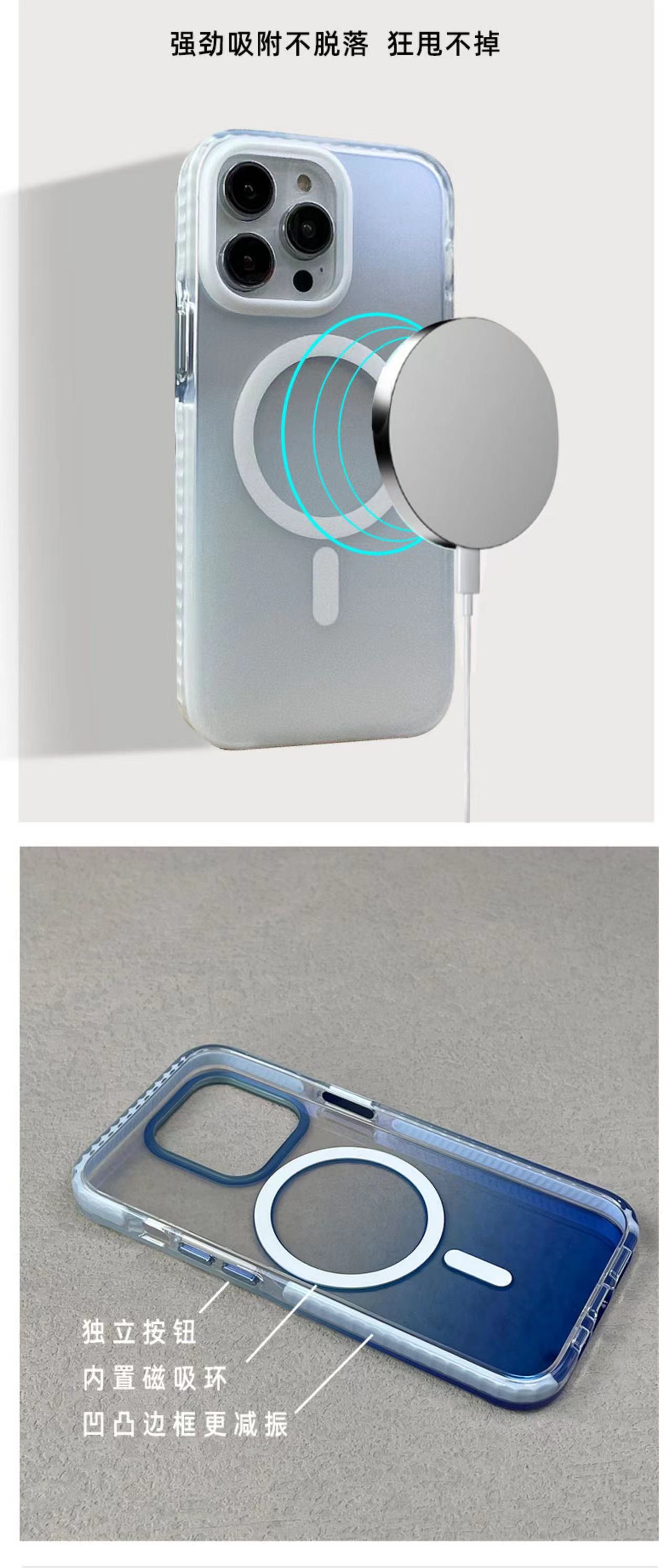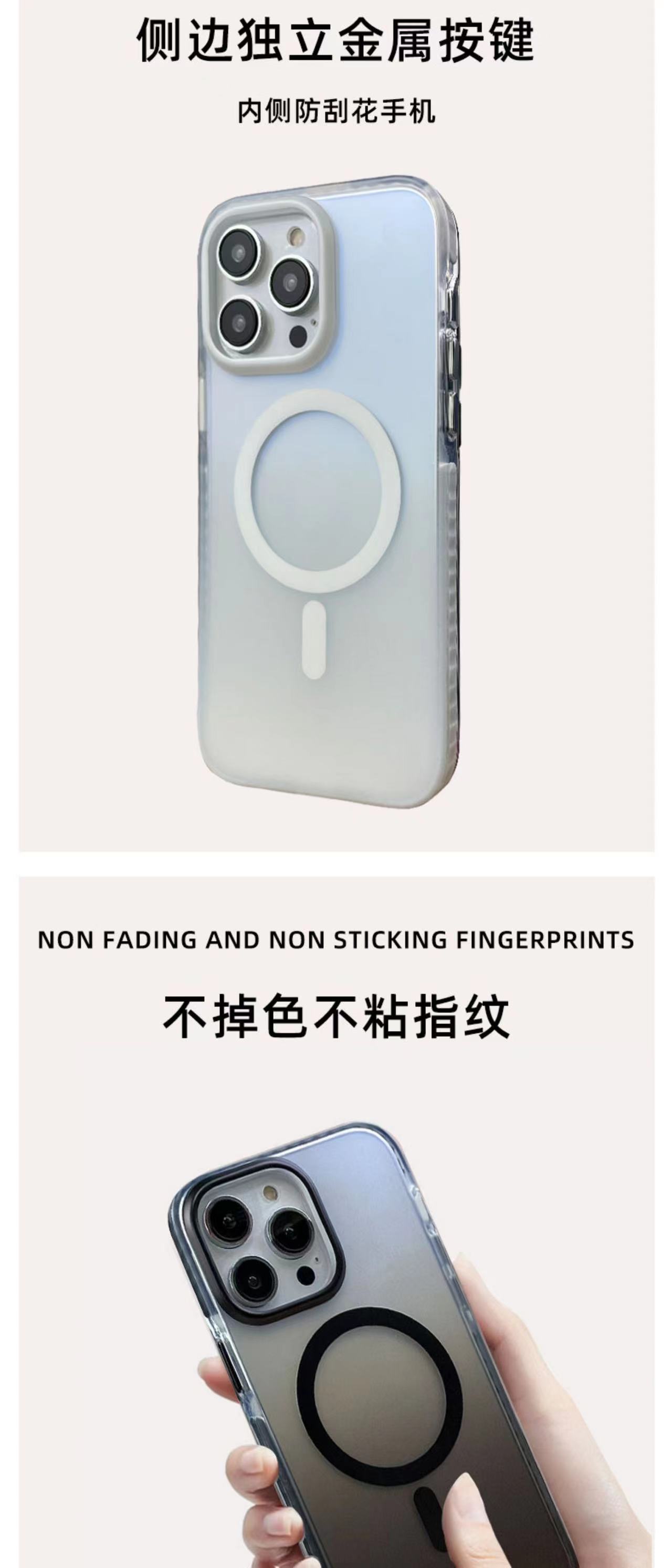 Funda para teléfono móvil semitransparente degradado iPhone15promax Apple 16 micro-esmerilado magnético estuche duro airbag de dos colores