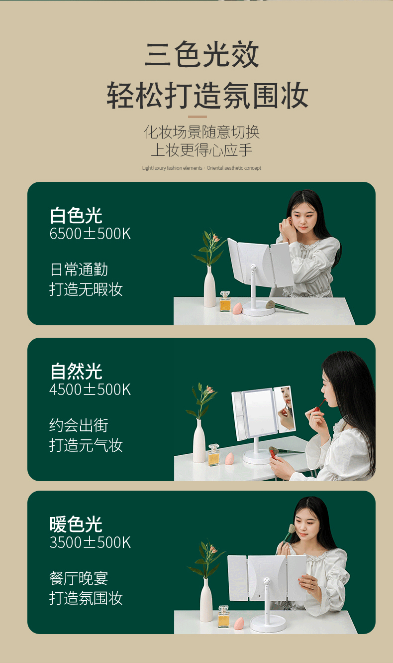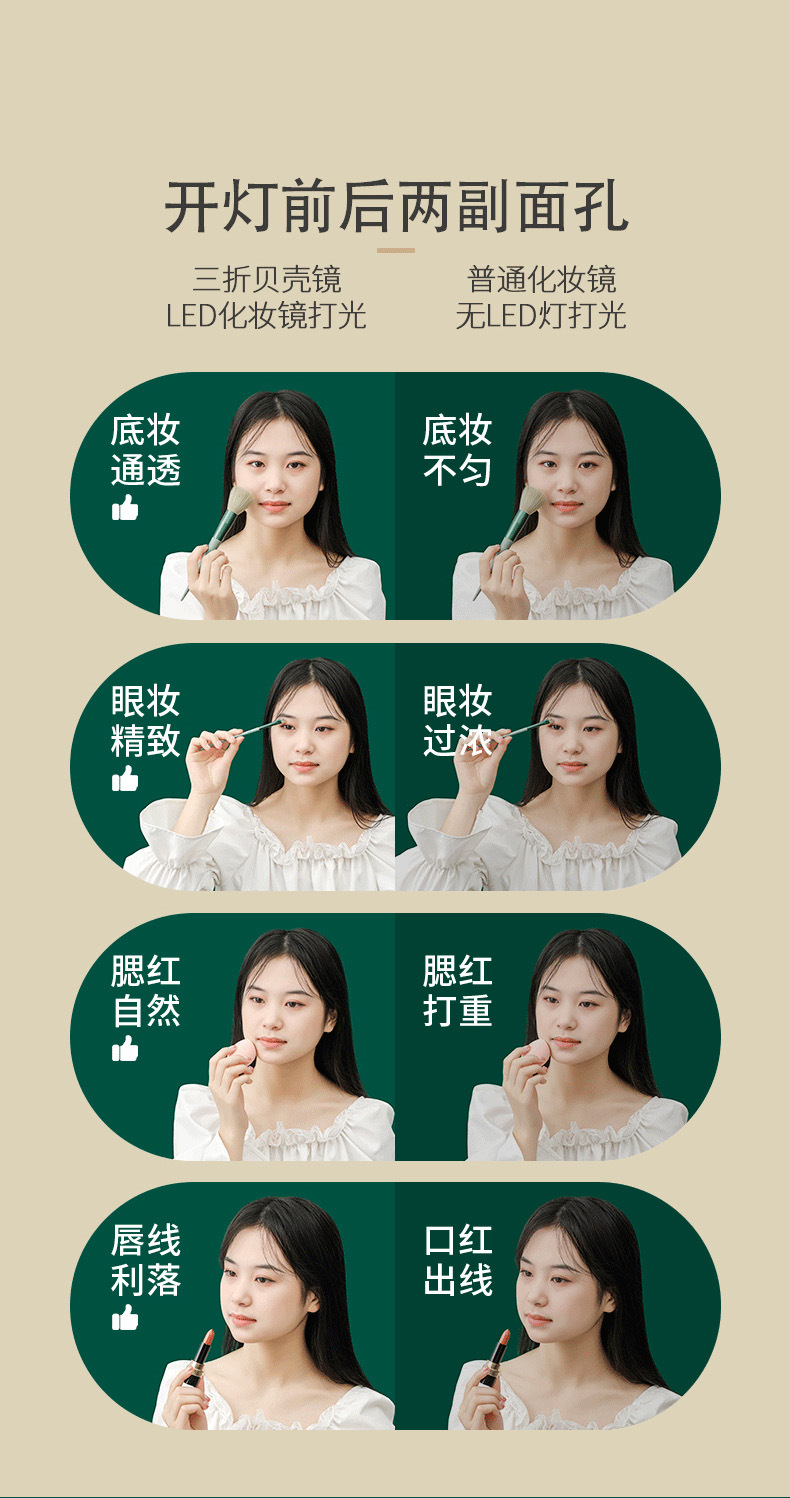 | Colores | Espejo de concha [luz blanca] blanco marfil rotación de 360 °,Espejo de concha [luz de tres colores] blanco marfil rotación de 360 °,Espejo de concha [luz blanca] verde de lujo ligero rotación de 360 °,Espejo de concha [luz de tres colores] verde de lujo ligero rotación de 360 °,Espejo de concha de cuero premium [tres luces de doble uso],Espejo de concha de cuero insignia [luz blanca de doble propósito para carga e inserción],Espejo de concha de cuero mejorado [enchufe con luz blanca],Espejo de concha de cuero básico [sin lámpara],Espejo de concha de doble puerta con fondo cuadrado esmerilado, espejo plegable, modelo enchufable [luz blanca] HY303D-CD,Espejo de concha de doble puerta con fondo cuadrado esmerilado Espejo plegable recargable [luz blanca] HY303D-1200,Espejo de concha de doble puerta con fondo cuadrado esmerilado Espejo plegable recargable [luz de tres colores] HY303S-1200,Espejo plegable de cuero [luz blanca enchufable],Espejo plegable con patrón de cuero [luz blanca de doble propósito para carga e inserción],Espejo plegable con patrón de cuero [tres luces de doble uso],Espejo plegable con patrón de piel en polvo de cerezo [luz blanca enchufable],Espejo plegable con patrón de piel de polen de cerezo [luz blanca de doble uso para recargar e insertar],Espejo plegable con patrón de piel de polen de cerezo [tres luces de doble uso],Espejo plegable con patrón de cuero [caja de regalo, bolsa de regalo enchufable],Espejo plegable de cuero [caja de regalo bolsa de regalo luz blanca],Espejo plegable de cuero [caja de regalo, bolsa de regalo, tres luces],Espejo plegable con patrón de piel de polen de cerezo [caja de regalo, bolsa de regalo enchufable],Espejo plegable con patrón de piel en polvo de cerezo [caja de regalo bolsa de regalo luz blanca],Espejo plegable con patrón de piel en polvo de cerezo [caja de regalo, bolsa de regalo Sanguang],Espejo plegable chapado en oro [luz blanca] blanco marfil rotación de 360 °,Espejo plegable chapado en oro [luz de tres colores] blanco marfil rotación de 360 °,Espejo plegable chapado en oro [luz blanca] verde de lujo ligero rotación de 360 °,Espejo plegable chapado en oro [luz de tres colores] verde de lujo ligero rotación de 360 °,Tinta triple espejo [luz de tres colores] rotación de 360 °,Espejo triple dorado [luz de tres colores] rotación de 360 ° |