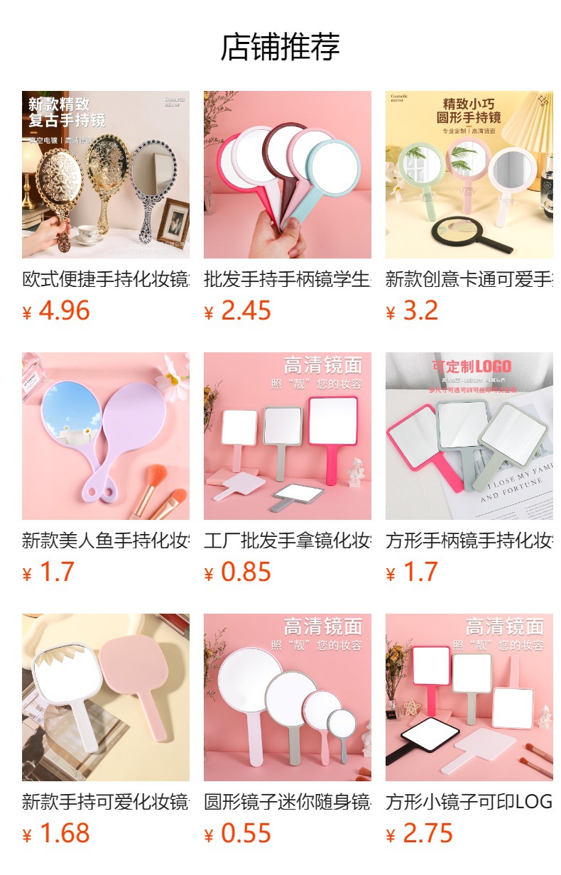 | Tamaño | 5,5*10cm espejo redondo,Espejo redondo con mango de 7.5*13.5 (estilo antiguo). |