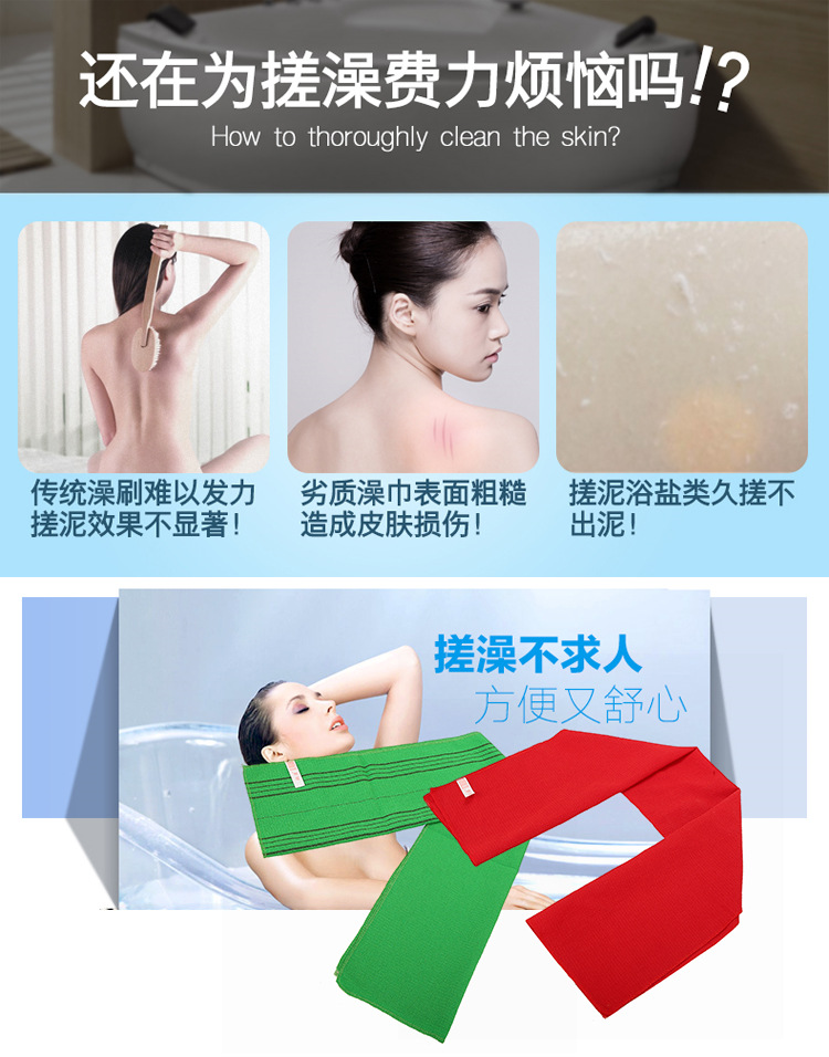 合理的使用澡巾,给您带来干净清洁,清新的沐浴感觉!