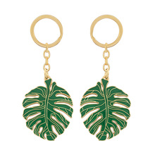 DIY合金镂空龟背树叶钥匙扣挂件北欧绿色清新滴油叶子包包配饰女