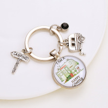 跨境新品房车HAPPY玻璃钥匙扣 欧美玻璃吊坠钥匙包包挂件现货