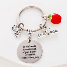 欧美钥匙扣挂件金属苹果圆形心形2022毕业季礼物礼品刻字钥匙扣
