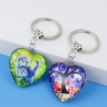 跨境热款玻璃爱心匙扣挂件 水晶玻璃钥匙扣挂件 玻璃吊坠钥匙链
